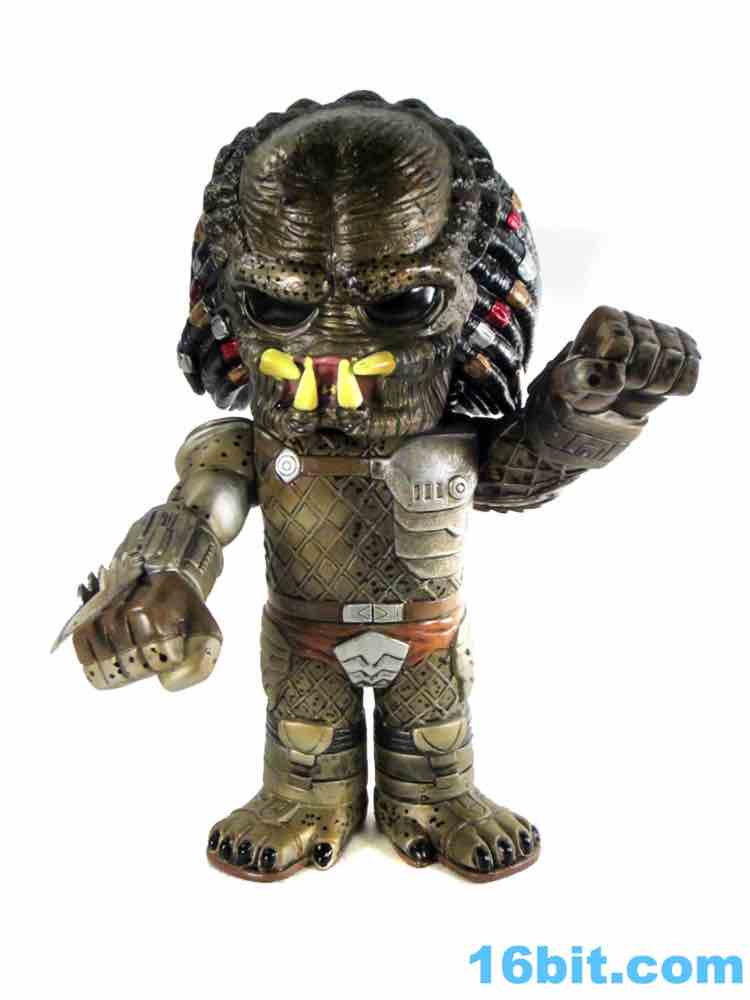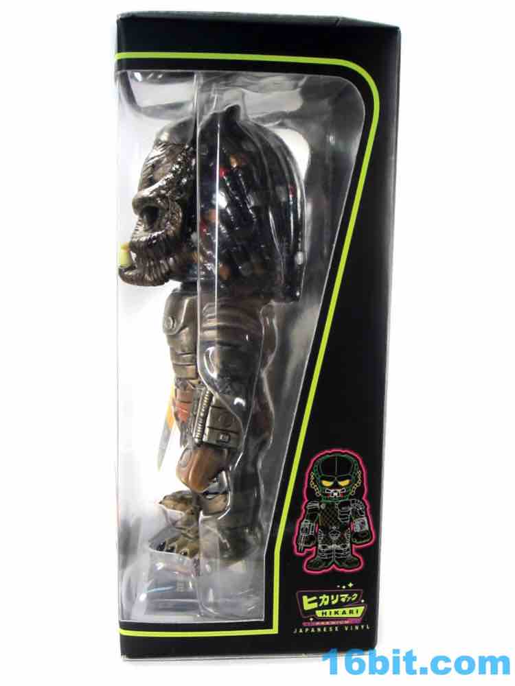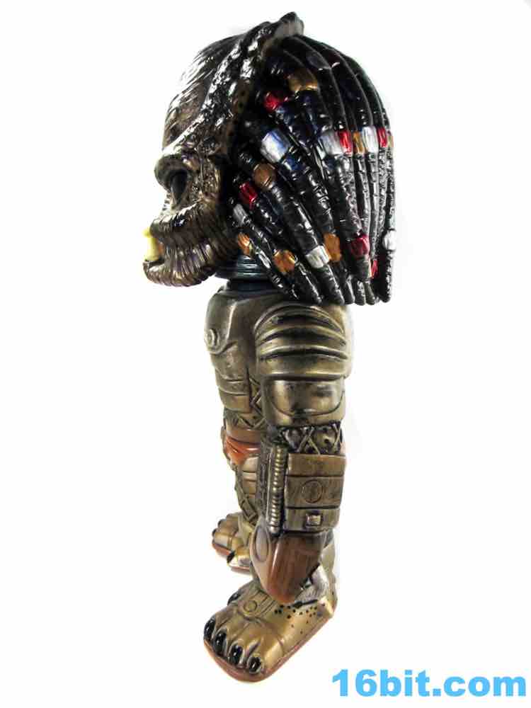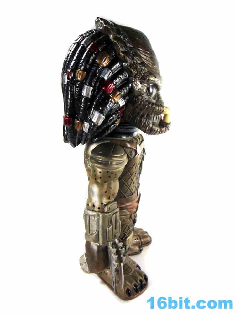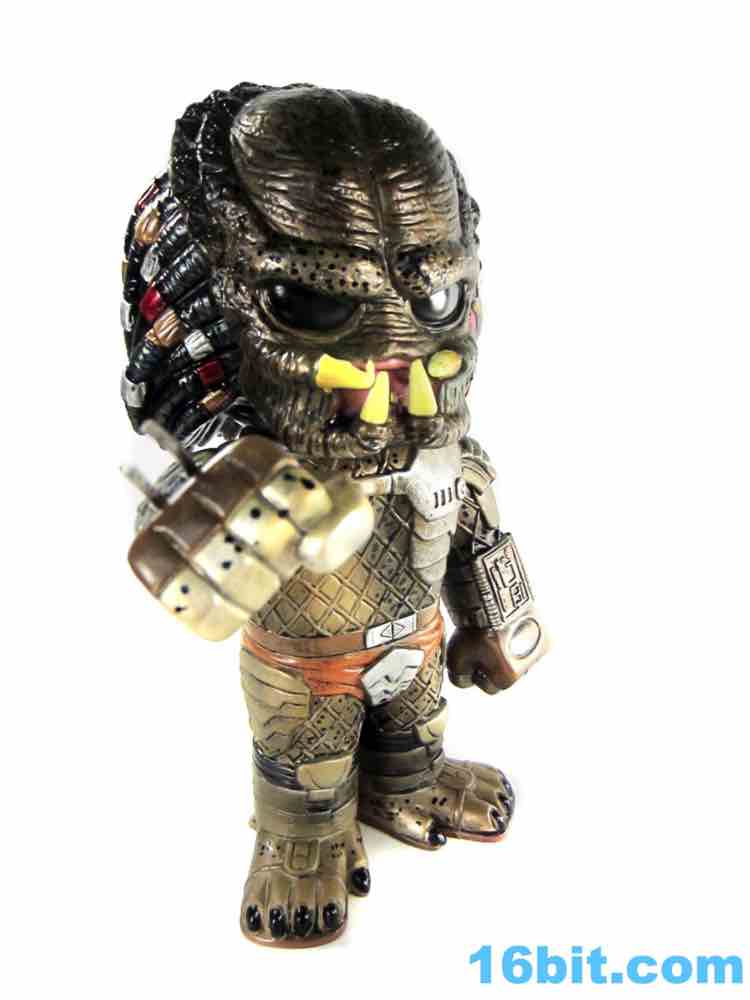 While it has no accessories to speak of, the black-eyed death machine has a couple of blades extending from his right wrist. Each is a little bendy - such is the requirement of safety - but on the bright side he's not completely unarmed. Other space warrior and hero toys lack their swords or blasters, with a rare exception like Deadpool incorporating his swords. While this isn't as impressive as a massive statue or giant action figure, it's a charming vinyl figure with a metallic finish. Being a new figure, you might not see $50 as the right price for something that stands 8-inches tall. If it were an older or vintage figure it'd be a bargain. Compared to the ever-increasing price of mini-busts, it's a sizable collectible with admirable deco for the price. I may not buy many (or any) more Predators, but I like this one enough to want a companion Alien to go with it.