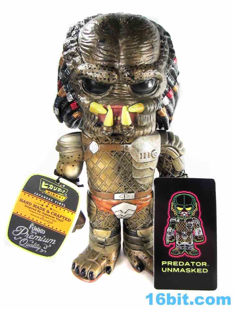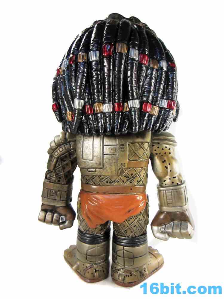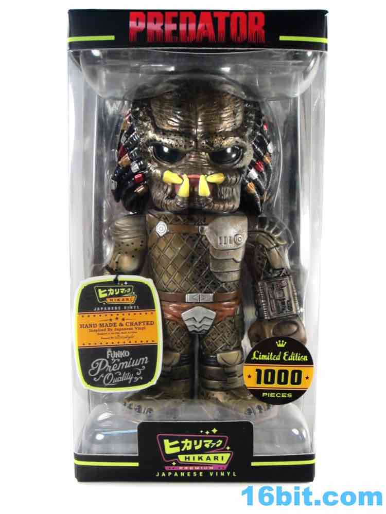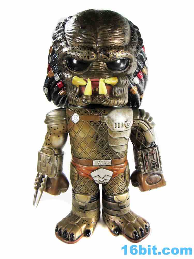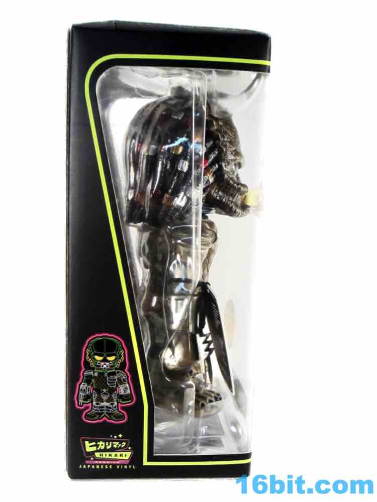 While it has no accessories to speak of, the black-eyed death machine has a couple of blades extending from his right wrist. Each is a little bendy - such is the requirement of safety - but on the bright side he's not completely unarmed. Other space warrior and hero toys lack their swords or blasters, with a rare exception like Deadpool incorporating his swords. While this isn't as impressive as a massive statue or giant action figure, it's a charming vinyl figure with a metallic finish. Being a new figure, you might not see $50 as the right price for something that stands 8-inches tall. If it were an older or vintage figure it'd be a bargain. Compared to the ever-increasing price of mini-busts, it's a sizable collectible with admirable deco for the price. I may not buy many (or any) more Predators, but I like this one enough to want a companion Alien to go with it.