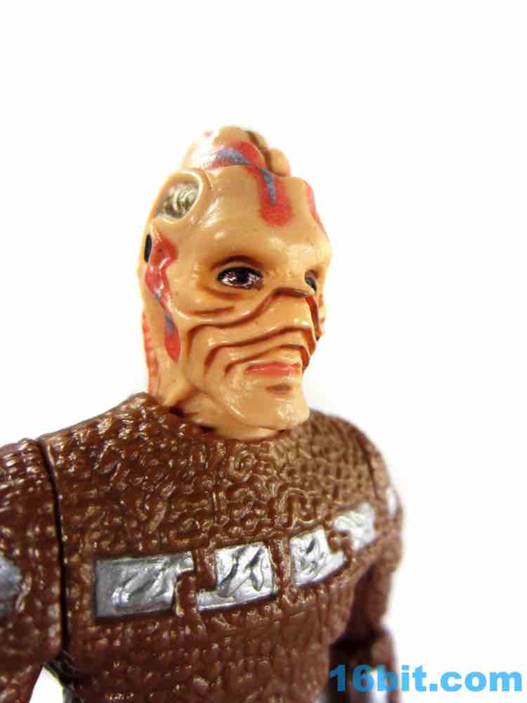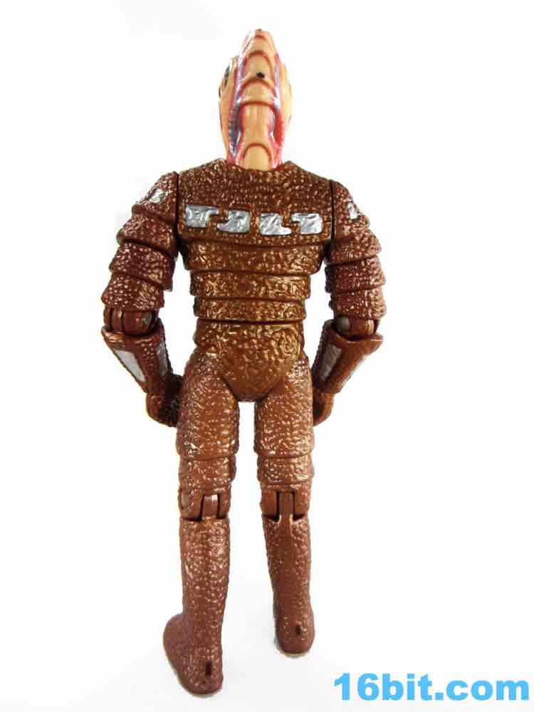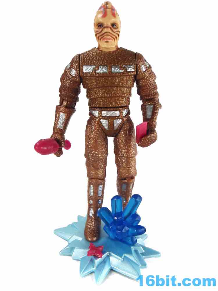 I was pretty super in to Star Trek in the early 1990s, thanks in part to the near total lack of Star Wars outside of garage sales. I saw the announcement of the Vorgon early on and wasn't even sure what it was - the episode "Captain's Holiday" didn't come to mind until the rerun happened to air, granting me a look at the oddly fishy, be-mittened, and bumpy creatures from beyond the stars. They're from the future, they're here to pick up some fancy technology, and they're getting in the way of Picard's desire to read/go on adventures/nail Vash. There's a reason they didn't make a big impression, and the species made but one appearance and I don't believe much more 3-D merchandise exists of the species. This particular figure is modeled after the male half of the Vorgon pair, Boratus. (I don't even remember if they named him on-screen in the episode.) It's a striking toy figure, though, with the obligatory bizarre accessories.
