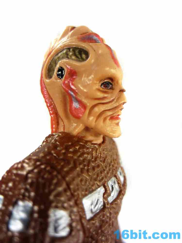 It's worth noting that the head sculpting is pretty impressive, but not decorated in a way that is terribly true to the show. You get the many gill-like folds on the face as well as some amazing lines painted to bring out the detail, plus color blobs on the side of the head and metallic patches to indicate some of the future beings. They're from the 27th century, after all!