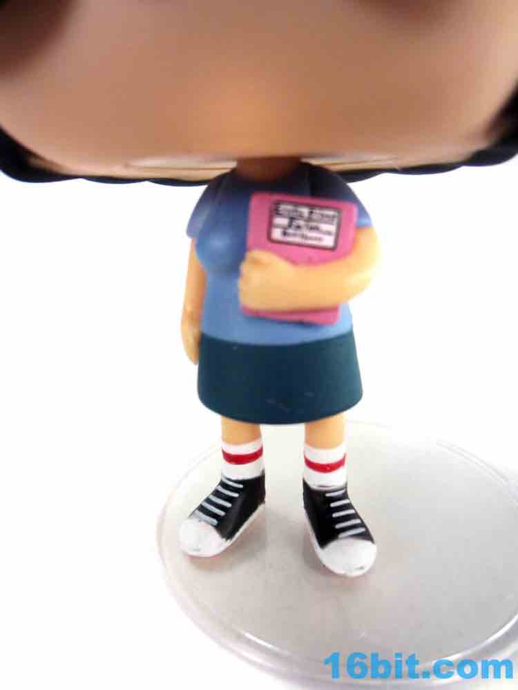 As a kid, she's right in line with the other figures in this series - not huge, not tiny, and decently detailed. Quality control problems seem to be the norm as paint applications increase, specifically some smudging and scuffing (thankfully in places where it's hard to see). The eyes are painted on the glasses perfectly, her eyebrows are toes on fleek, the shoes are very nicely painted, and the sleeves were decorated well too. For a ten dollar collector figure with presumably limited appeal, they did a bang-up job here. The tiny lettering on her "Erotic Friend Fiction - Buttloose" notebook is the icing on the cake, because it's not a terrible smudge. I'd be lying if I said the paint was totally perfect, but for this kind of figure (and at this price) it's pretty good.