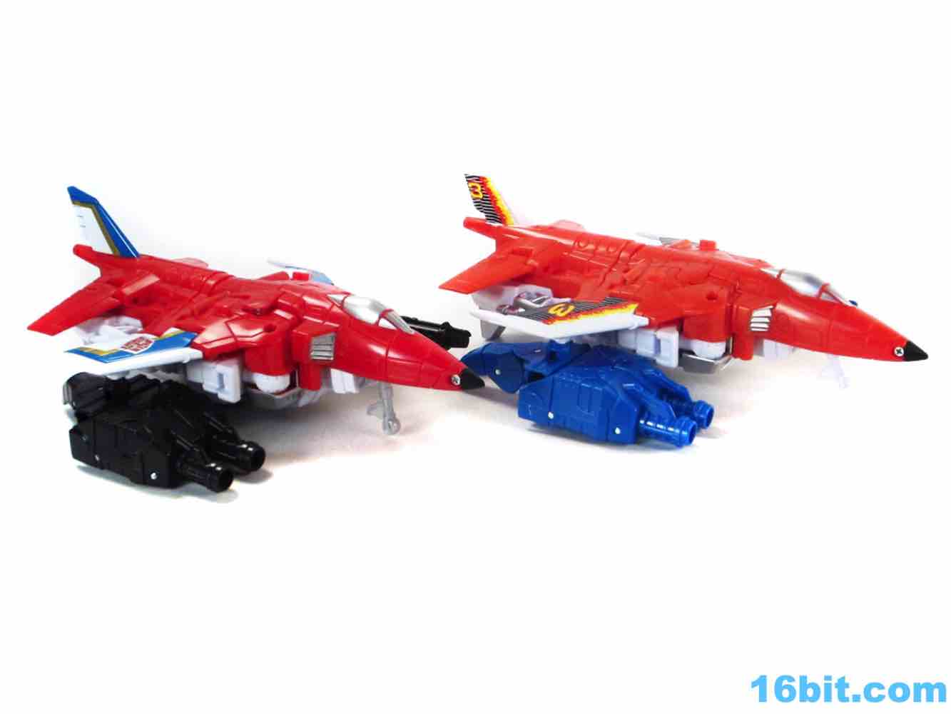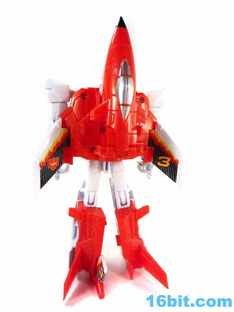 Rounding out the team is Firefly, and boy howdy does he look a lot like the first one. The G2 robot drops the blue on the torso and ads in some more silver, but aside from that it's very similar. The red is a little brighter, the landing skid is a little whiter, and of course the wings have an awesome pattern that's way cooler, but it's fundamentally still the same basic layout. If you blurred your vision, they'd be pretty much the same. This isn't a knock against it - it's true of the original 1994 toy, too. It's a pretty honest update of that original toy.