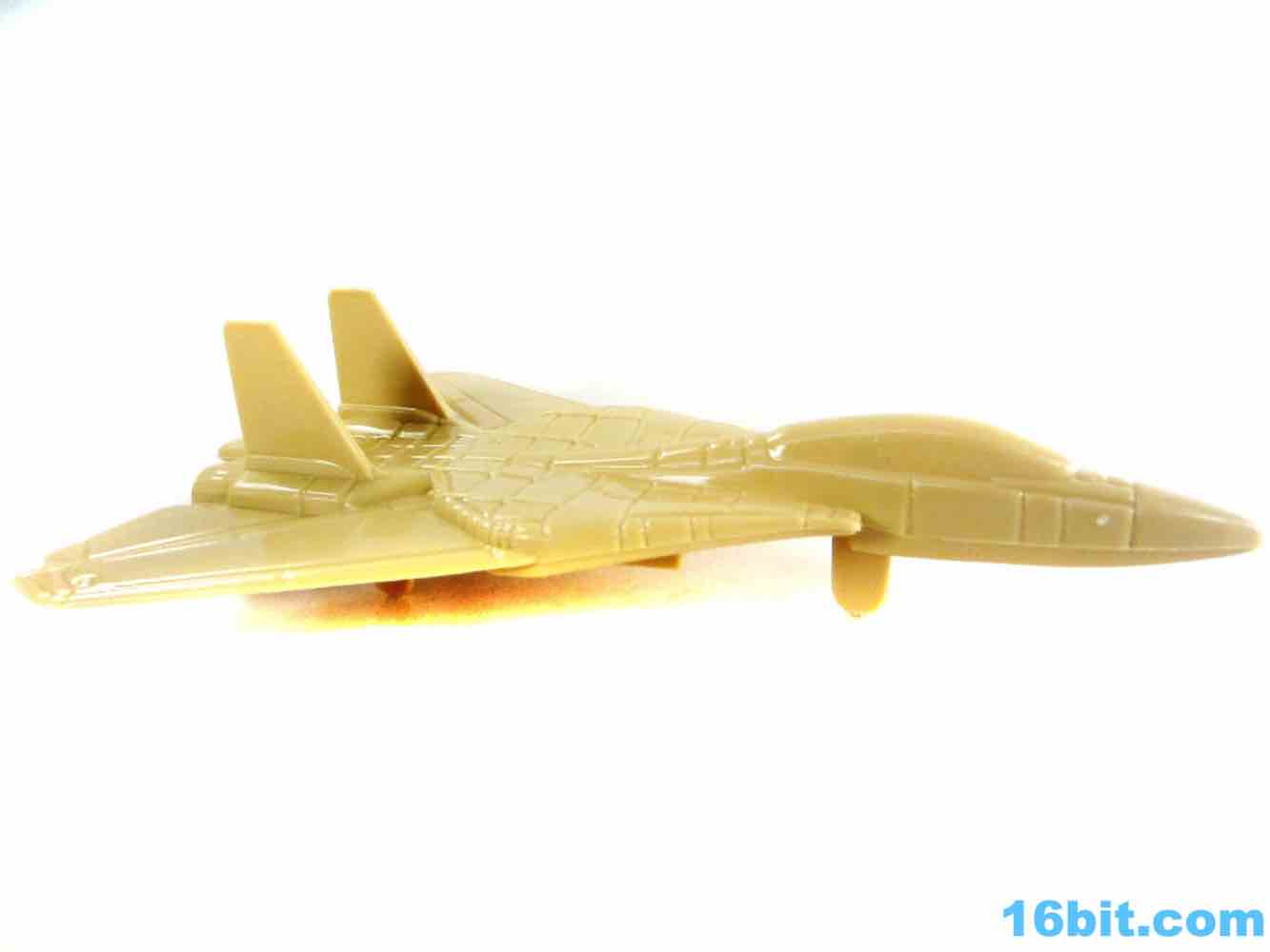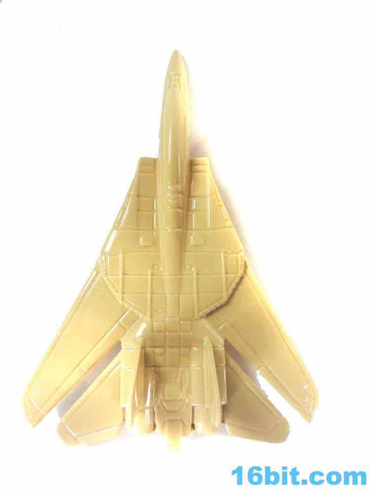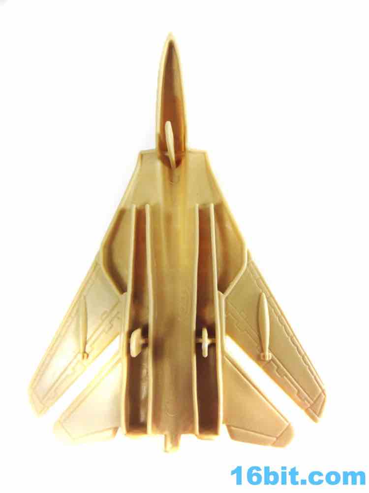 Next up, the jet is familiar if you're a toy fan. The F-14 fighter was also used for Starscream, Thundercracker, Skywarp, and other jet toys - so this could be great custom fodder if you're in to that sort of thing. The set includes two in tan, plus stickers to decorate to your liking. Interestingly, the top of the jet is glossy and the bottom has a lovely matte finish. I can't tell you why, but it's notably different. The jets also read "Processed Plastic" - another manufacturer - on the bottom of each.