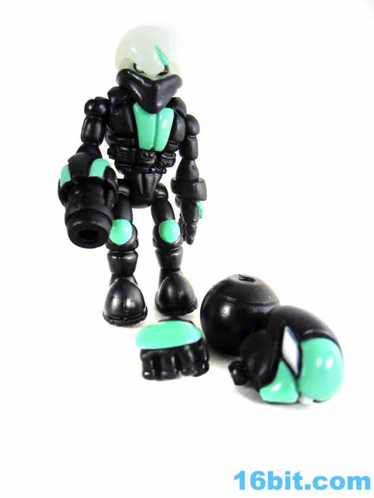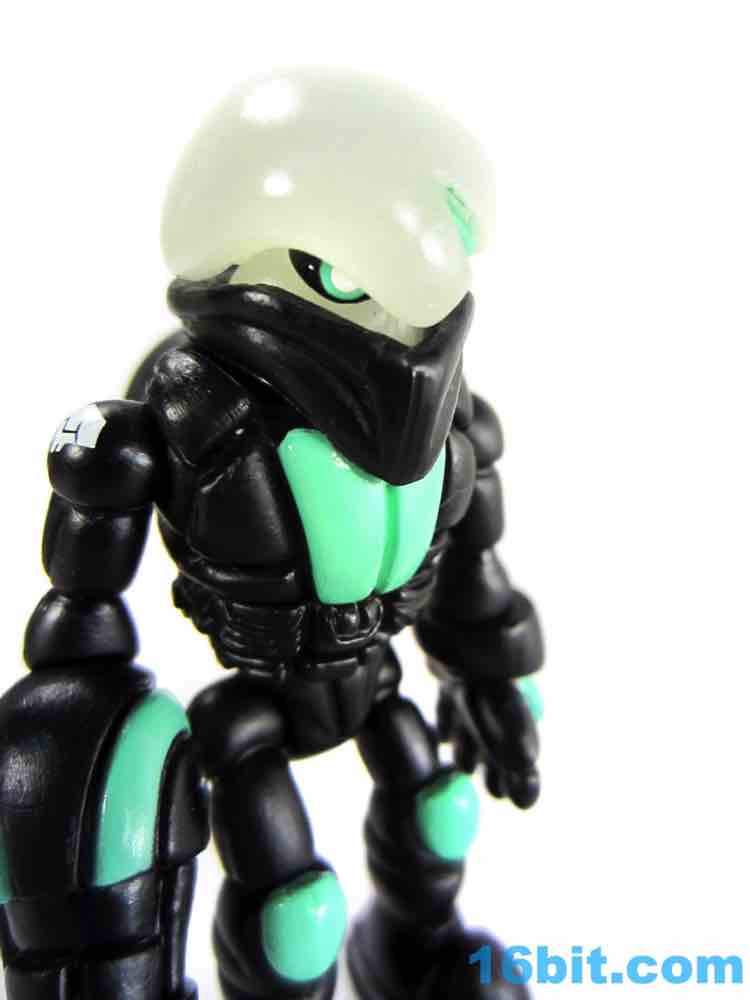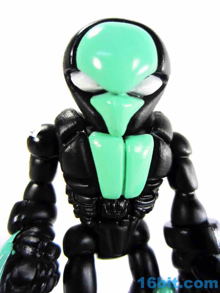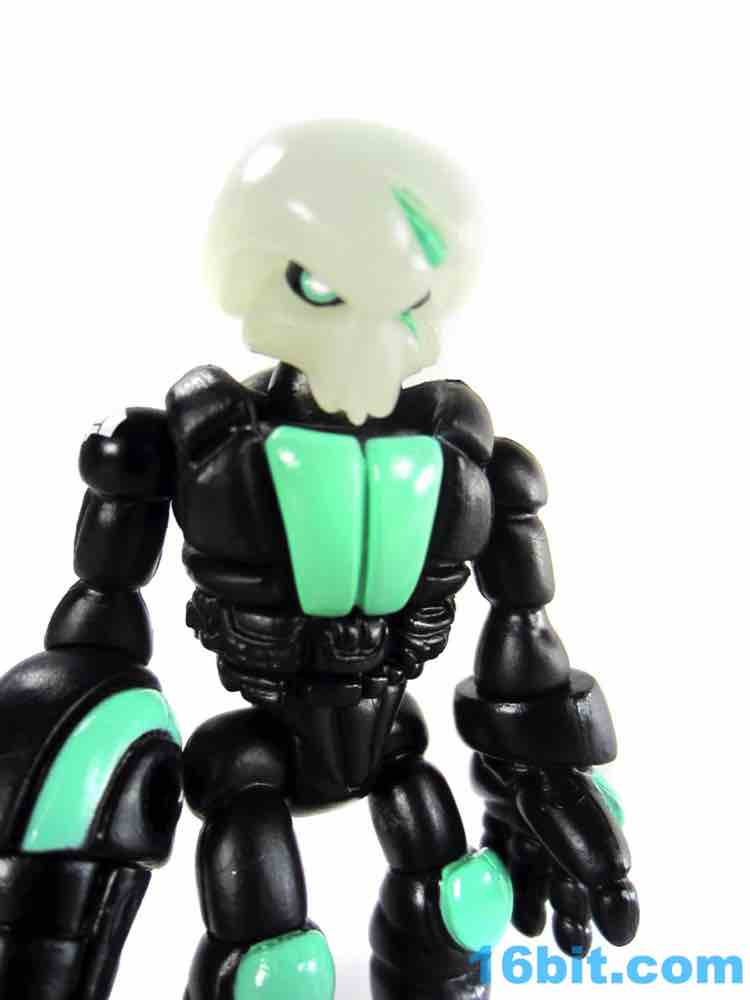 The jump from II to III was pretty dramatic, with the inclusion of a Gobon Blaster with painted green details as well as hand and knee markings on the limbs. You'll also notice sole painting on the shoes - it's completely unnecessary and the kind of thing that most toy companies would cut out, but Onell likes nice little extras. The head is very similar to previous glowing Scar Pheyden releases, keeping the green gash and black painted collar around his neck.