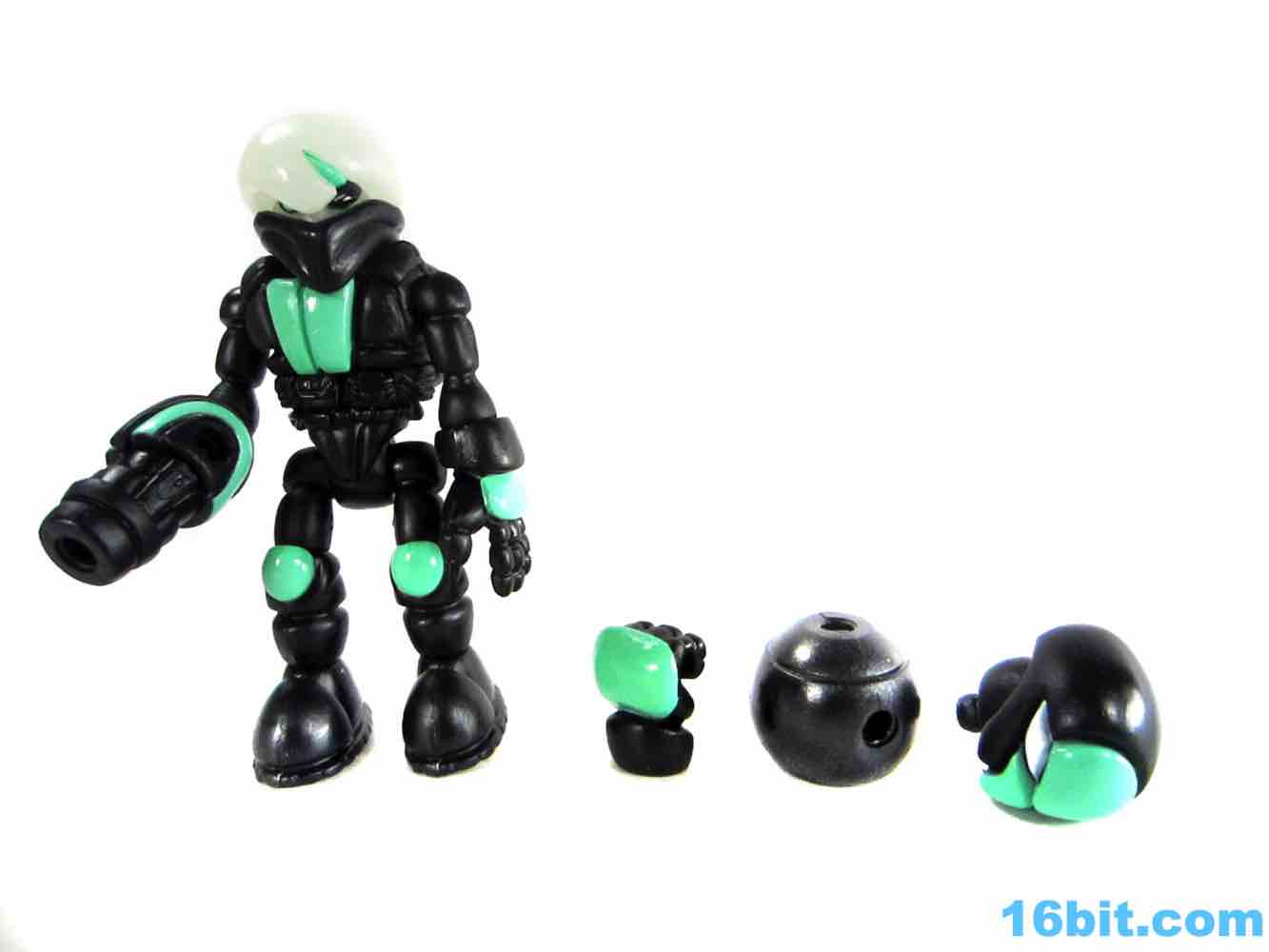 If you're familiar with the default construction, you know what to expect. As always, the figure is about 2 3/4-inches tall and sports several points of articulation, each of which serves as a place to pop the figure apart for customization. A three-piece weapon is mounted to his right arm instead of a fist - included - and a disc is set up as a backpack. The head pops off and the scarf is optional, with a bonus Sarvos head here in case you wish to use it, so even if you buy each version of Hades they can serve as different figures on your shelf. It's a nice bonus.