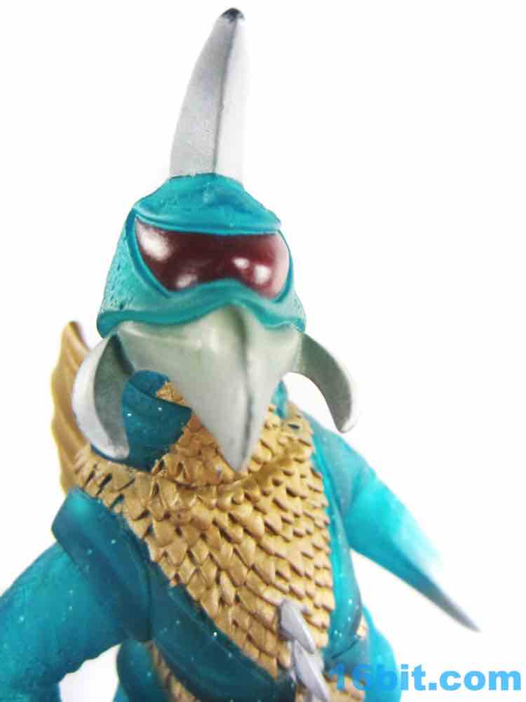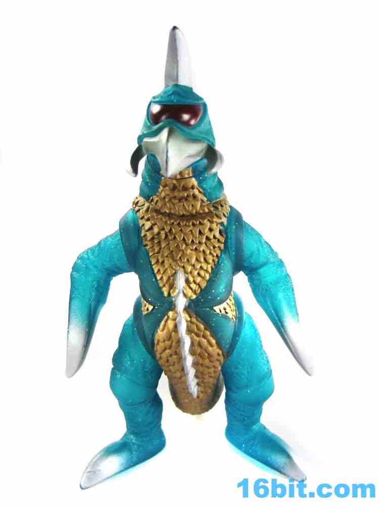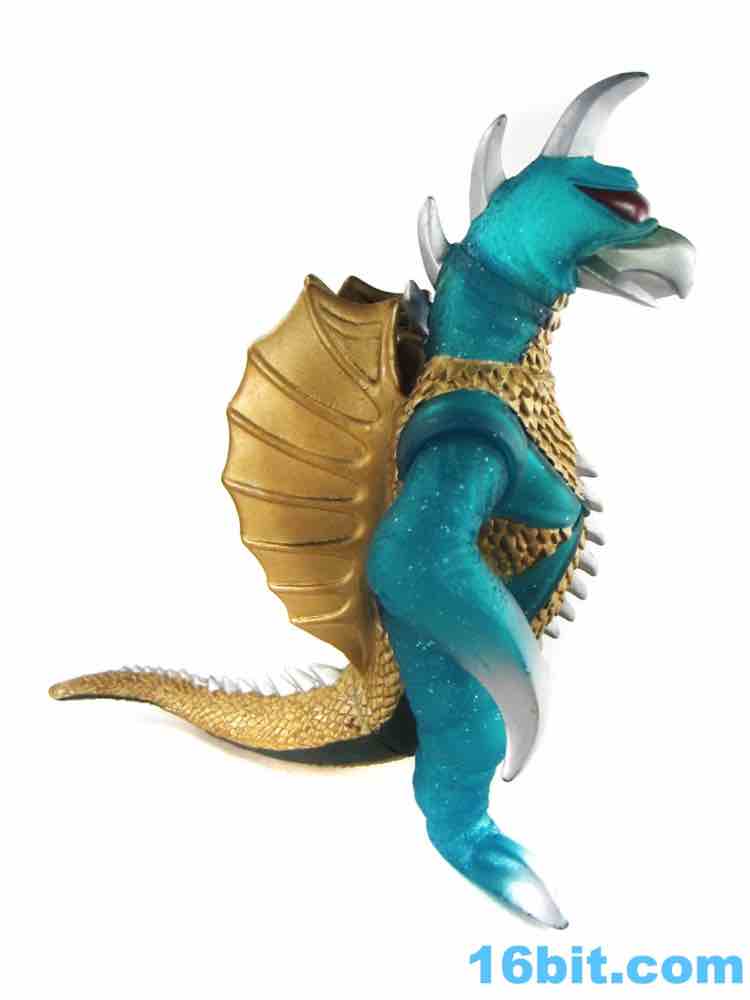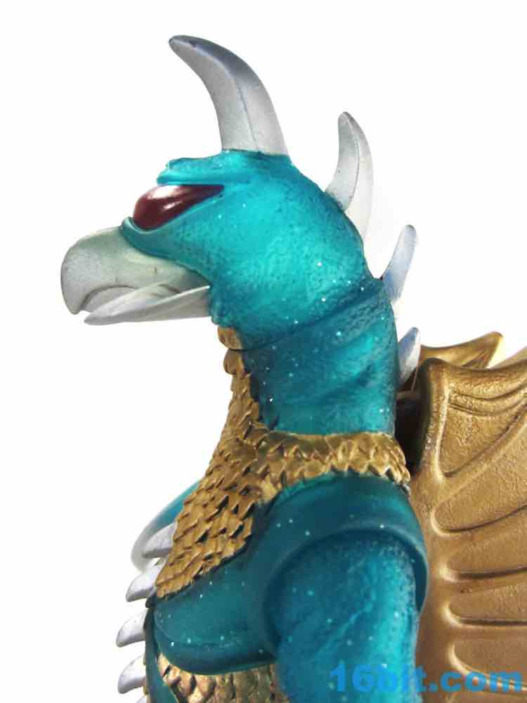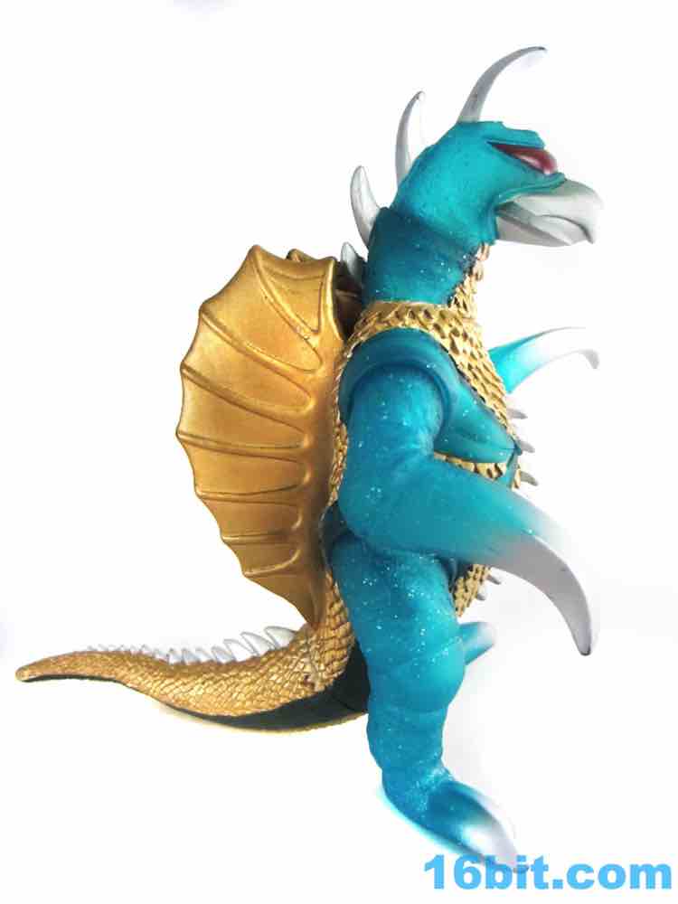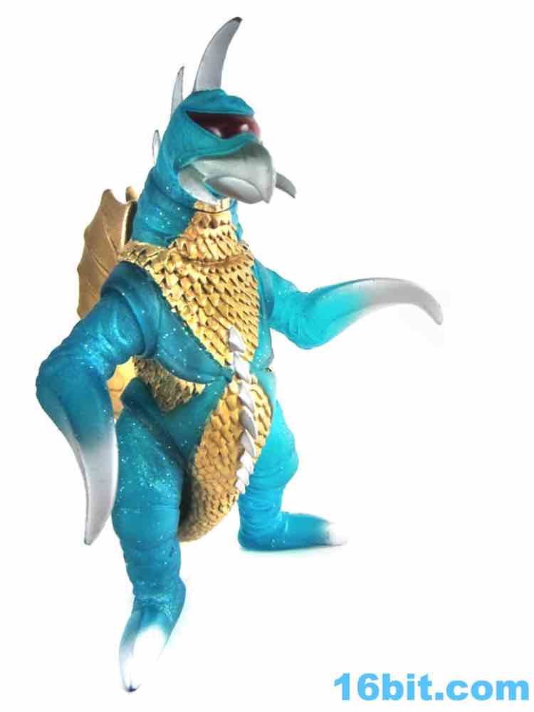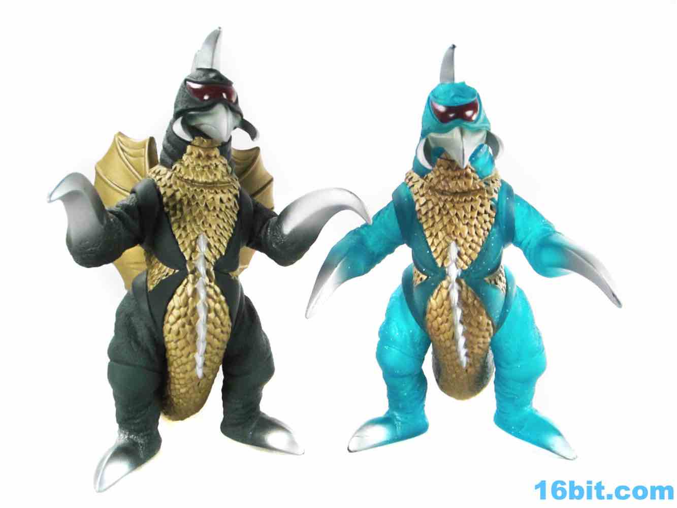 The 6 1/2-inch vinyl figure is a redeco of a 2002 mold which I just happened to have handy - I was buying Japanese Godzilla toys to woo the future Mrs. 16bit, who as it turns out does not have the collecting bug. So... hey, I guess it worked? The paint apps are virtually identical with silver, gold, and red covering the body and hear fairly nicely with swell fades that just happen to look gorgeous with the bright green and glittery plastic. This particular Fusion Gigan goes for a decent price on eBay and I can see why - unlike the murky, smokey Godzilla this is a bright, chipper-looking figure. And dagnabbit, I'd buy more if I saw them.