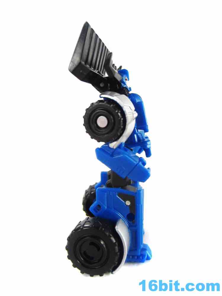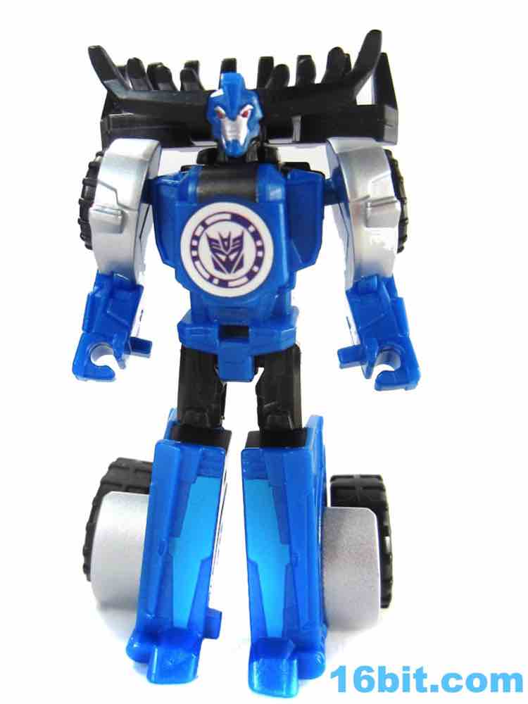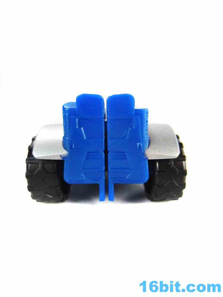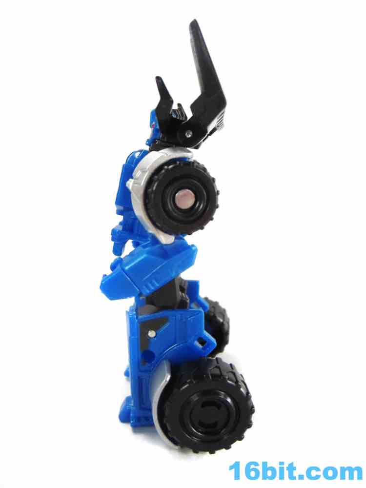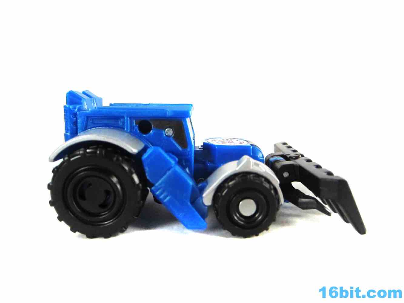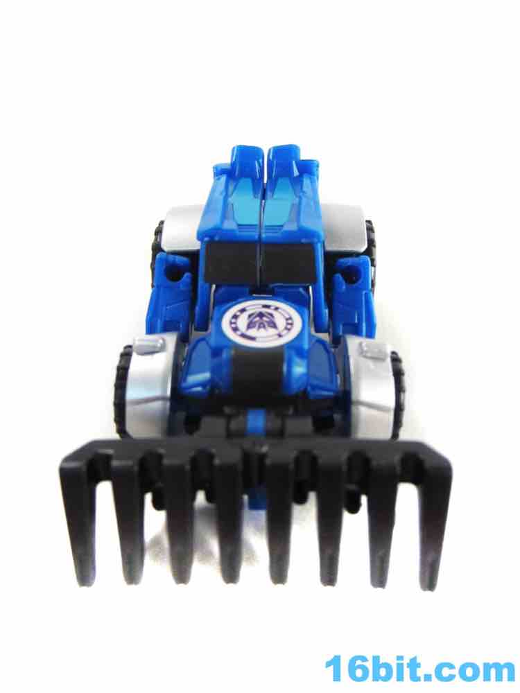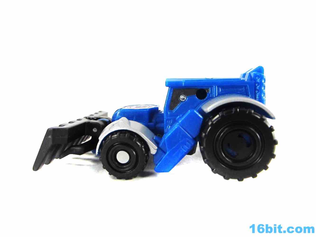 As a tiny tractor, the vehicle is smaller than a business car and features rolling wheels with no real action features. It's not unlike the rest of the vehicle modes, it doesn't do much of anything beyond look neat. A Decepticon symbol is visible as a scannable sticker for an app-based game I have yet to try, and silver deco over each wheel looks pretty spiffy. It's not true to the animation model, but hey, at least it looks neat. The transformation process is kind of a pain - the leg on mine kept popping off. I don't expect I'll play with it much.