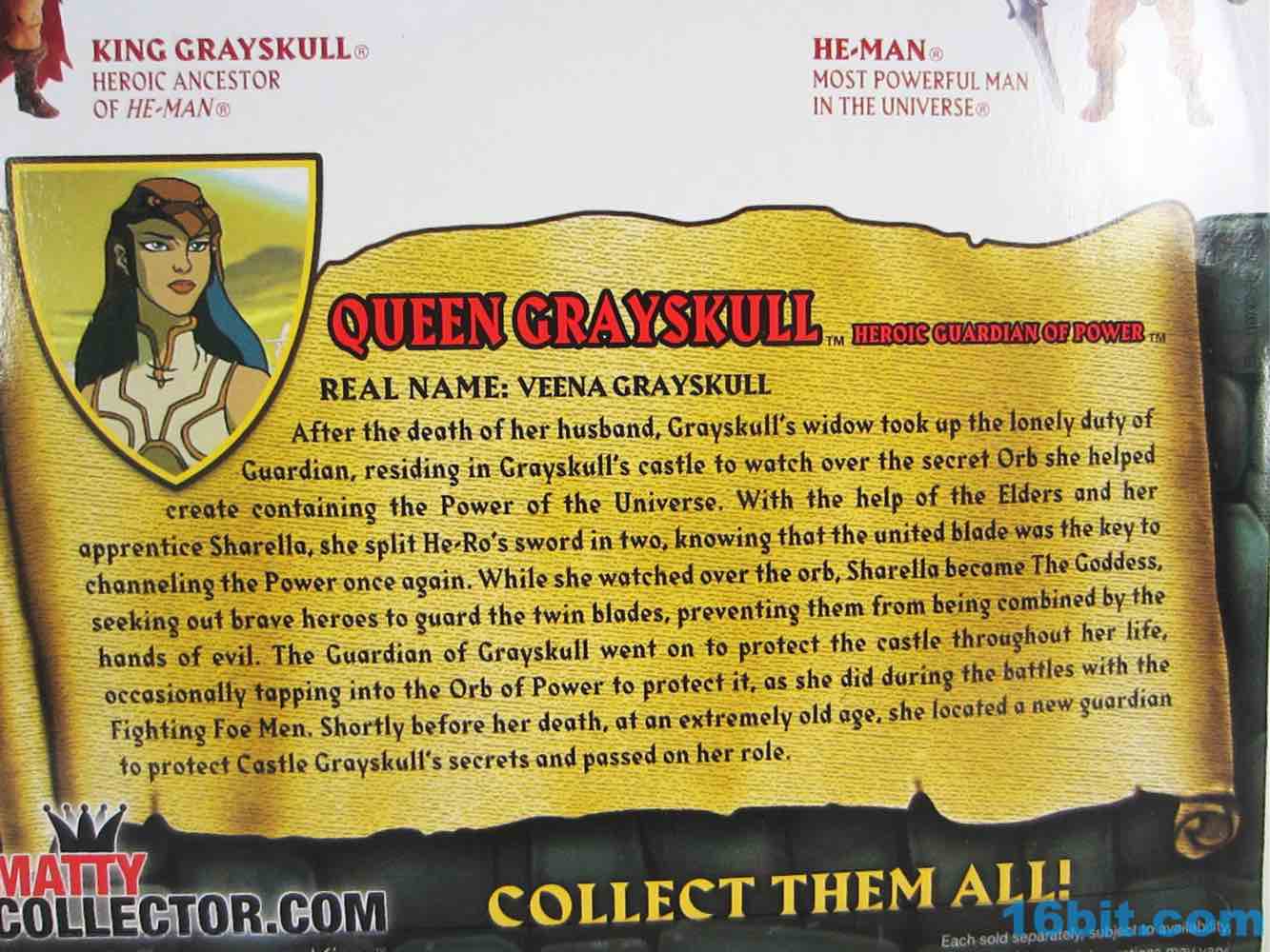 The very first figure in Masters of the Universe Classics was King Grayskull - patriarch of the 200X franchise, and the figure from which all others were descended in this line. As the name may imply, he was pretty close with Queen Grayskull - who just happened to be the forerunner of the Sorceress in that cartoon series, and as such she looks a lot like the Sorceress with a more ancient bird motif. The sculpt is great, the accessories are mostly good, and there are plenty of new pieces here. Fans desiring a full-on MOTU2K Sorceress, though, will note that Veena would need a ton of new parts to match her magical descendant.