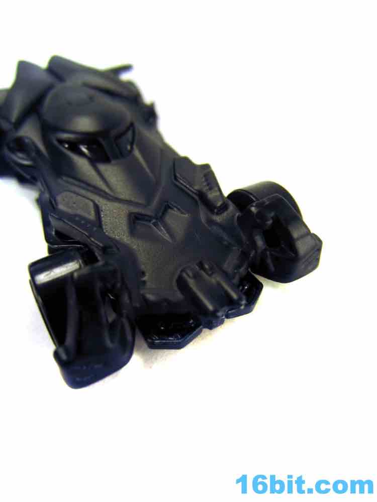 The paint is fine, but due to the nature of the vehicle it can't really succeed or fail. It can only be black. To deviate from this would be folly, and faux paint chipping at this scale would be a waste of effort. The car really does show a change in how we as a culture think - Tim Burton's fanciful car was stylized and alien. The Animated Series version was like a vintage hood ornament - retro and streamlined. Joel Schumacher made it look like it came from another planet, while Nolan gave us a slightly more practical military surplus vehicle. Now we're dealing with something that incorporates a lot of what came before with a design that evokes what Michael Bay did to the Transformers. We've got more guns, more panels, and pieces that look mean and sharp but also like they may pop off. Like much of our popular culture, this car and from the marketing this movie play off our fears rather than our optimism. The dreams of the 1960s and 1970s didn't come true, and our hopes for the future have shifted from utopia to survival. This is, of course, very depressing.