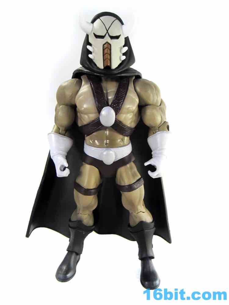 With a design that couldn't be more true to the cartoon, Masque has tiny underpants, big muscles, gloves, and a mask - because of course he does. The hood on the back of his head hides his identity or species, so all we really know is that he's a ripped fantasy figure with a cartoonish face covering that somehow looks even more animated than the actual animation design. That takes some doing - the straps and boots and pretty close. I don't think his boots were pointy, but other than that the crew at Mattel and the Four Horsemen got it.