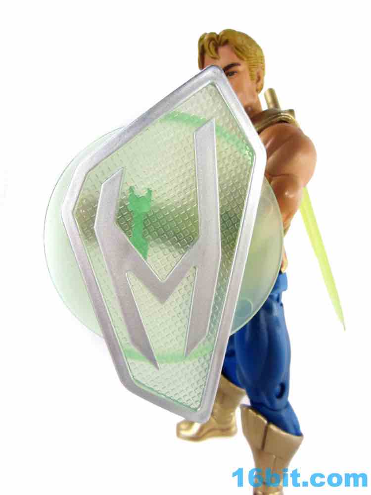 They belong to the New Adventures version of Thunder Punch He-Man - note the shield is green, as is the sword. The H/M letter is a little... strange, and doesn't fit with the aesthetic of Filmation's general look and feel. If you plopped these on your New Adventures He-Man figure [FOTD #736]. He'd need new armor, but it looks like Mattel may be on track to letting you convert New Adventures He-Man into another flavor. That ain't a bad idea, especially as Masque does look more than a little silly holding this gear. I do appreciate, though, how Mattel spreads its tooling budget out to give the collecting-them-all crowd a shot at cool accessories and upgrades for sticking the line out for the long haul.