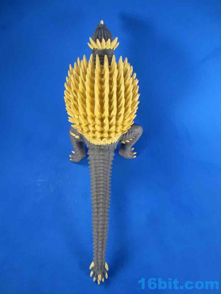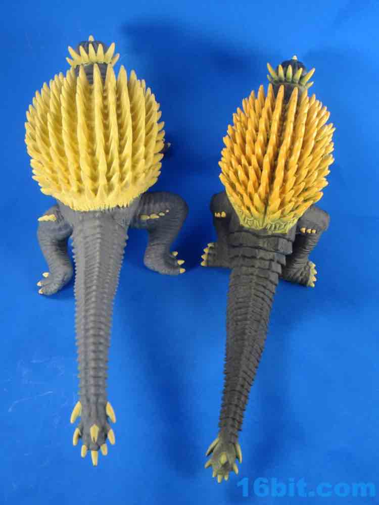 I should also note the US version is (about) 12 1/2-inches long from the nose spike to the tip of the tail club if you run a tape measurer along his back, while the Japanese one is about 12-inches. I have no idea if people care about such things, but the Japanese version - by virtue of being smaller - seems like it has slightly better sculpted detail. The US version is a little softer, the scales are a little rounder... but they basically look the same otherwise. It wouldn't entirely stun me if they both came from the same orignal sculpt with a couple of minor tweaks. I guess I could count all the spines, but I'd rather not.