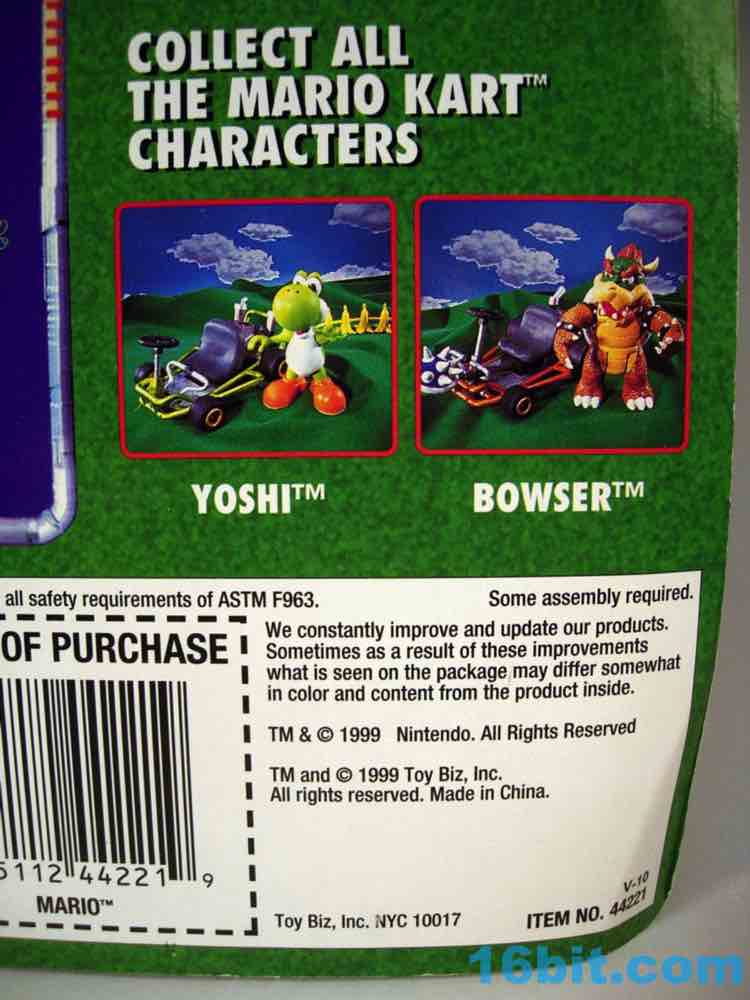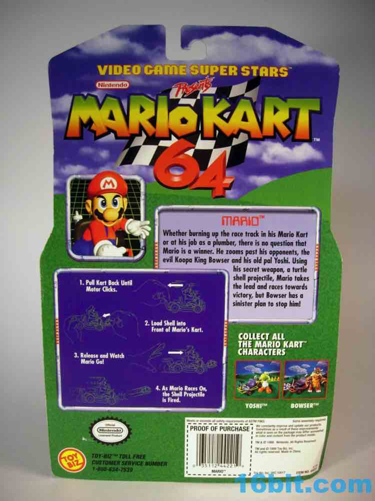 Mario was joined by Luigi, Donkey Kong, Bowser, Wario, and Yoshi to name a few - and good luck finding them for a fair price. Loose samples are pricey, and the plastic packaging frequently turns yellow - even if stored in a cool, dark, dry place. This is an amazing artifact from one of the great eras of couch multiplayer gaming, and the Nintendo64 basically ruled living rooms and dorms by virtue of having 4 controller ports - and very expensive controllers. Mario Kart was and continues to be a very big deal, and this is probably the only real action figure representation of the game not as a "vehicle" or "micro" toy - this is a real action figure with a real vehicle that you can really play with. If the price is cheap - let's say $20-$30 - go get one. It's pretty cool and a similar toy today couldn't be done for less than $15-$20 anyway. They're charmingly almost on-model and I doubt Nintendo would approve such a thing in 2016 - but hey, who knows?