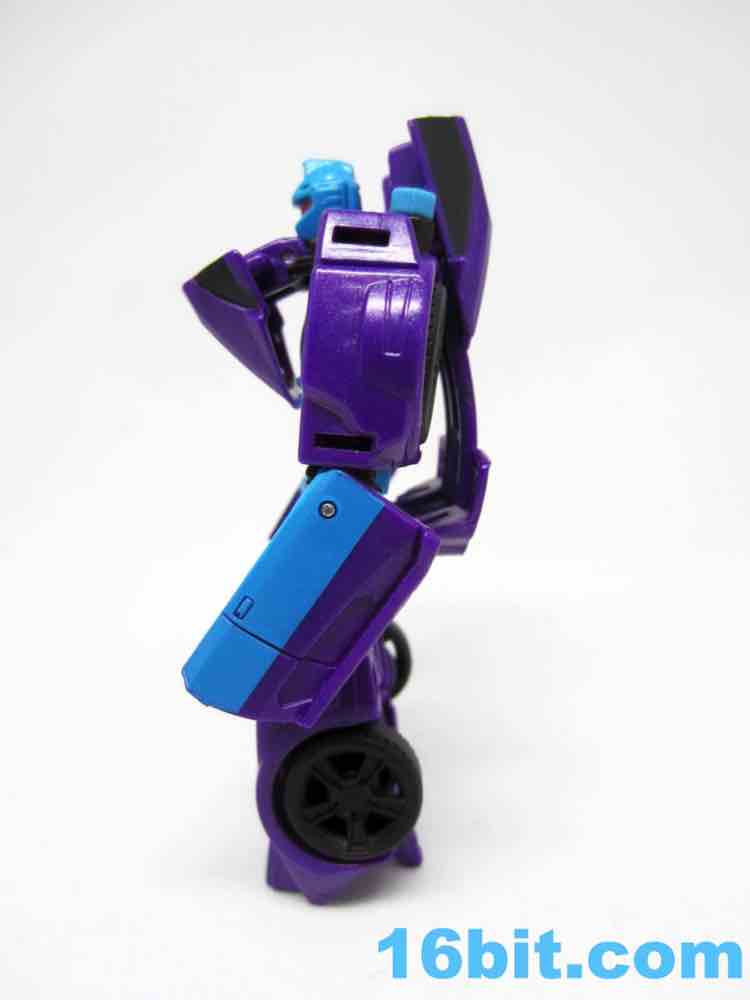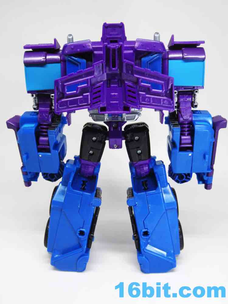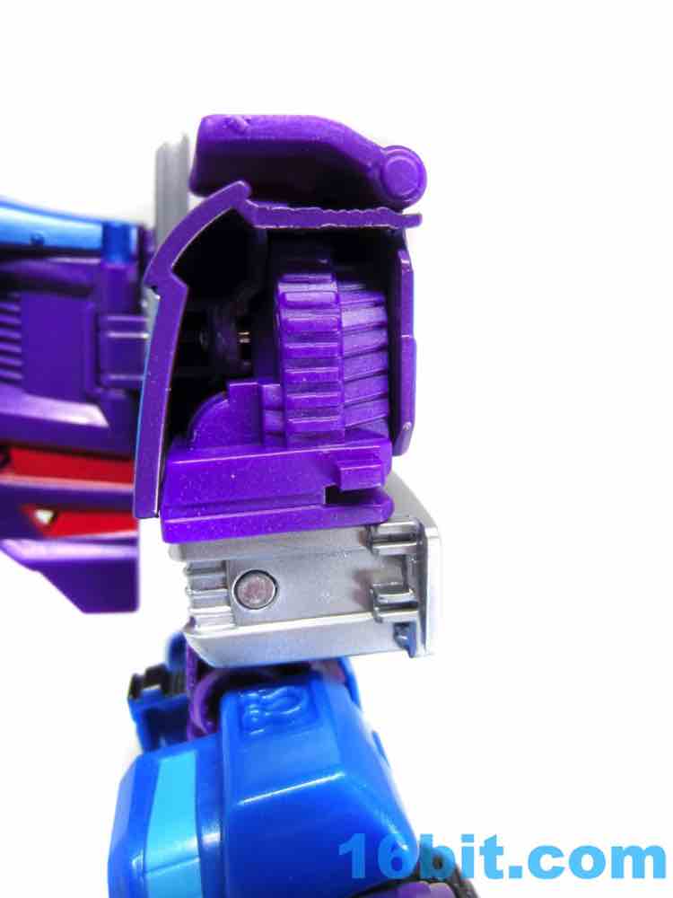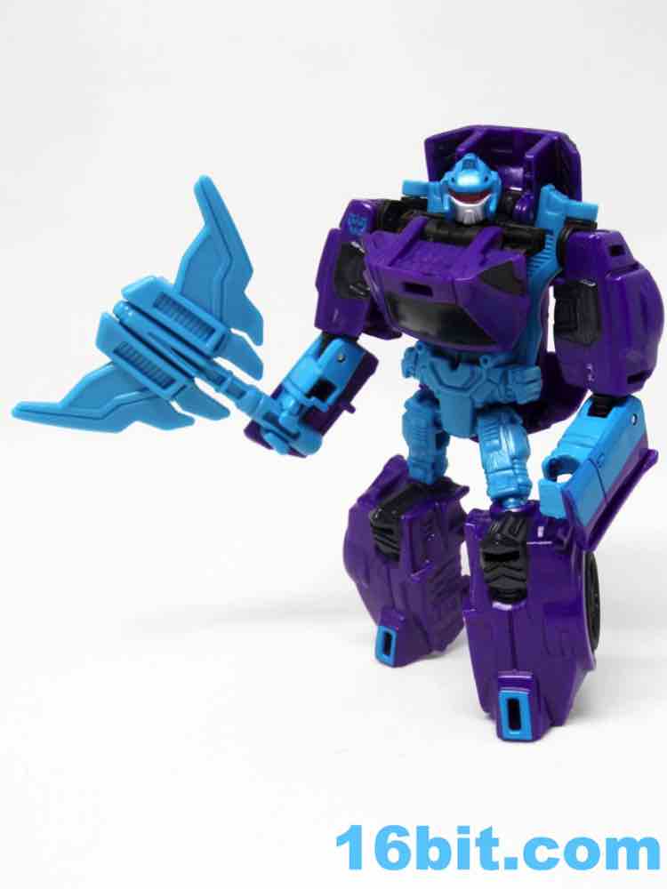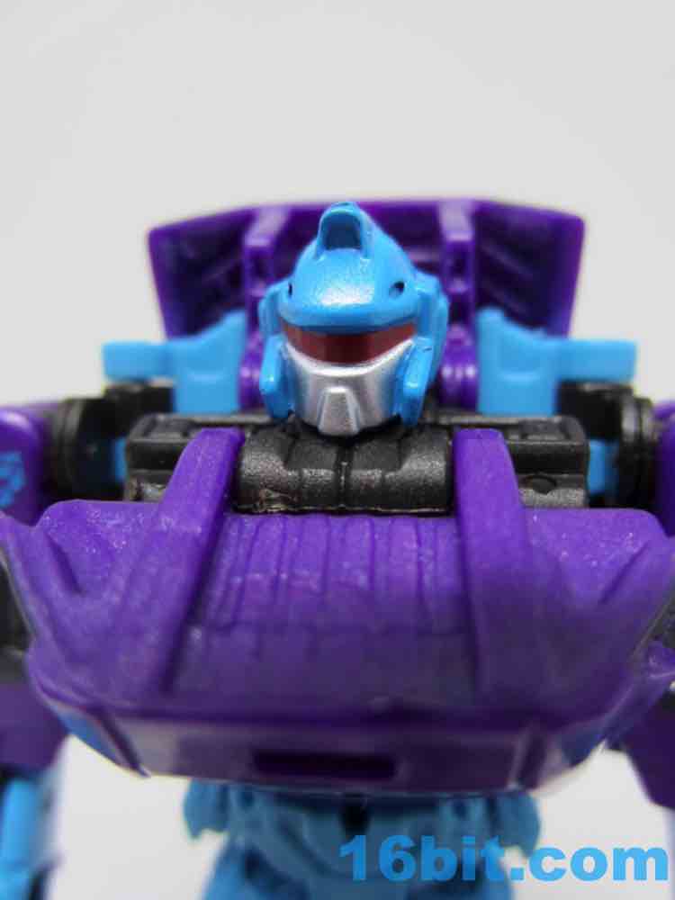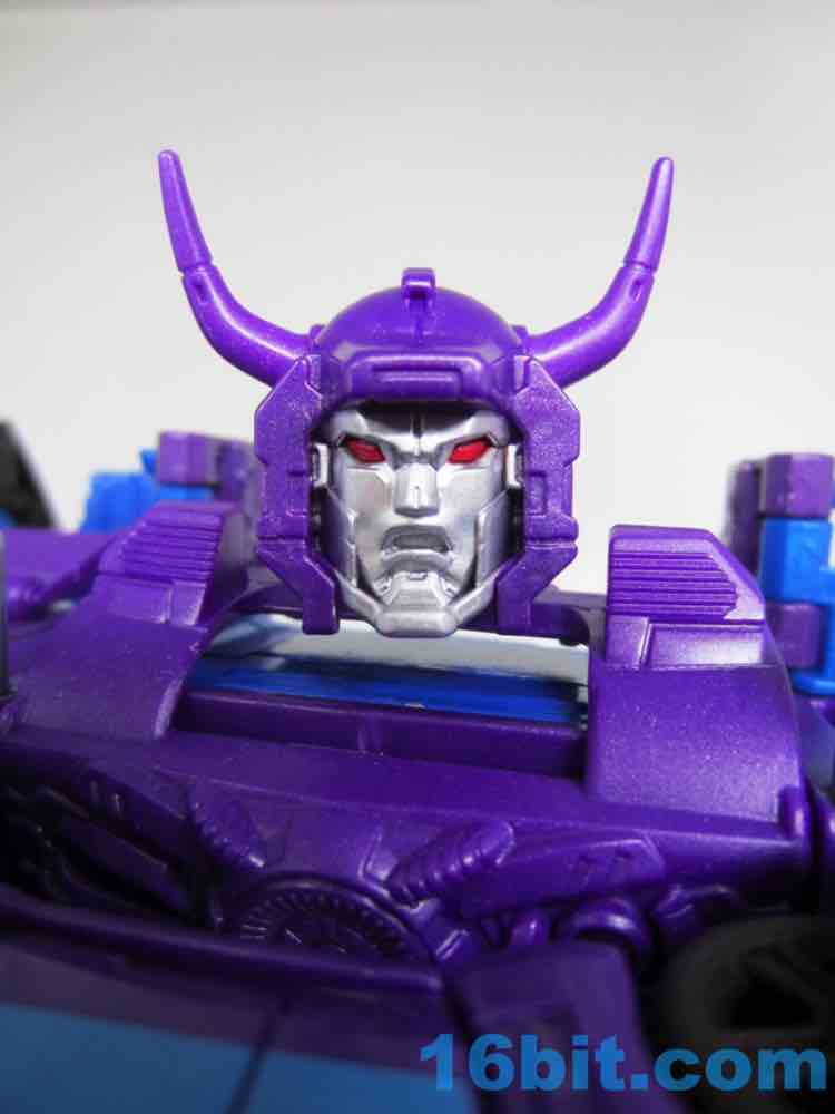 Starting small is Blackjack, who has no proper transforming analog. This time around he's purple with blue accents and a gorgeous silver face mask on his head. The red eyes pop nicely, and a bright blue G2 Decepticon symbol on his right shoulder looks wonderful. An even bigger one appears on his hood, giving this figure a pretty wonderful look. I mean, it's everything you could want in a fake G2 update short of chrome or the word "DECEPTICON" written on his person somewhere. Sadly, this feature was left out across the board. Hasbro was going for ca. 1994 Ugly, but didn't want to go all the way.