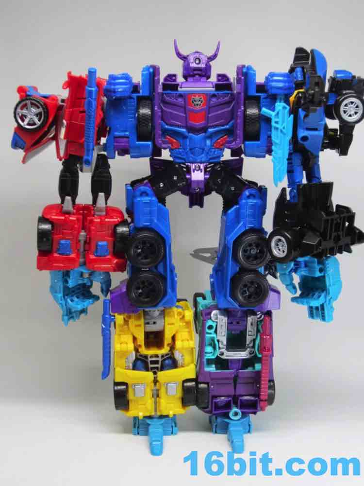 Because I have zero tact, when I first saw the Combiner Wars prototypes I turned to Hasbro and said "Sooooo... Generation 2 Menasor?" Don't get me wrong - I like Superion, I dig Defensor, and Bruticus ain't bad. But the Stunticons were a legit holy grail - a special few got Breakdown as a BotCon exclusive. Fewer still had loose or packaged samples of Wildrider, Dead End, or Dragstrip. And ain't nobody seen a complete prototype for Motormaster. This 2016 set is a fanwank of the first order - hardcore fans probably could never afford the 1990s prototypes, and other fans know the legend but would rather have other things. Like a house. This set affords you a similar set that's larger, cheaper, and packaged in a nice box with a G1 Menasor poster and a G2 Menasor trading card. It makes no sense to me, but it's pretty decent. Individual figures would probably set you back around $90, so $100 or so for this shared exclusive boxed set is on the happy side of decent and a 75% cheaper than it would have been as a BotCon exclusive set. And let's be honest - you'd want it if it were a BotCon set.