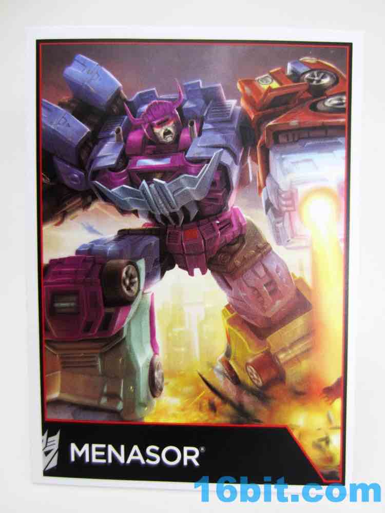 In what I consider to be a dubious move to appeal to collectors, Hasbro saw it worthwhile to fit a small brown cardboard envelope in the box. In it, you'll find a thick cardboard card with G2 Menasor art. You'll find a thick-ish small poster featuring G1 deco Menasor art that I don't believe I saw elsewhere. You'll also find a dual-sided instruction sheet that shrinks down the transformation directions to postage stamp size. I appreciate their packing it all in a thick envelope for protection, but let's be honest - the card is a waste of resources and I don't expect many (any) of you to actually hang up the poster due to its small size.