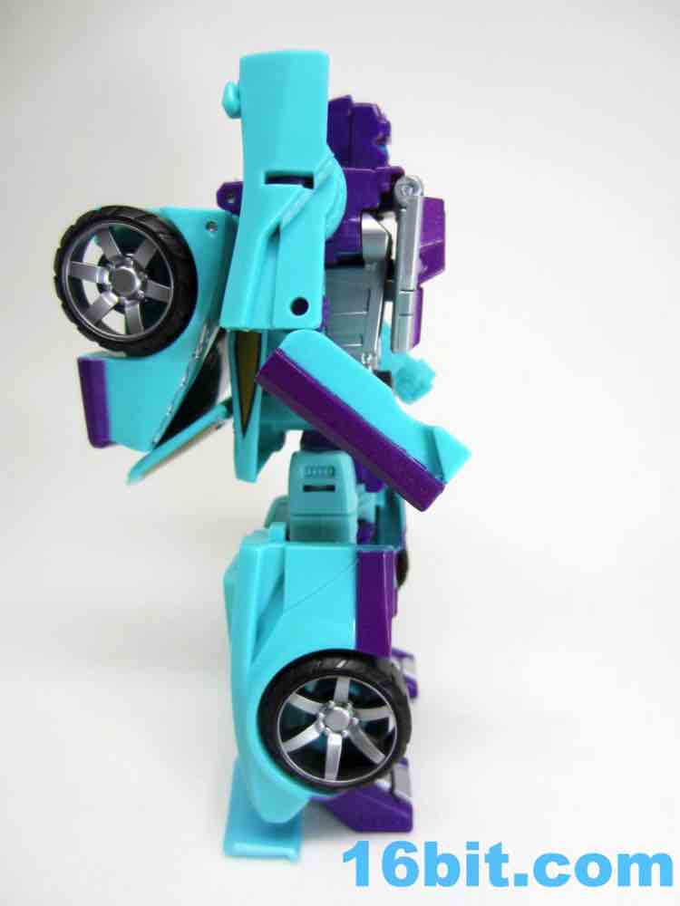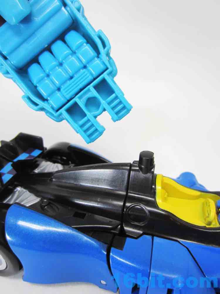 The car has the classic G2 hood wrap design, but the loss of the bloody roof is a downer for me and a boon to the sticker reproduction community. I have little doubt many of you would shell out ten bones to get that on here, even if it's never going to be seen when you display Breakdown as a combined robot or a single robot. His baby blue plastic gun/foot/hand looks nice and fits easily in his hand, giving me little doubt that a number of fans will cherry-pick this figure on eBay if/when anyone breaks them up. There are a few - very few - collectors with all versions of G2 Breakdown and I doubt they're going to let the completist streak end here.