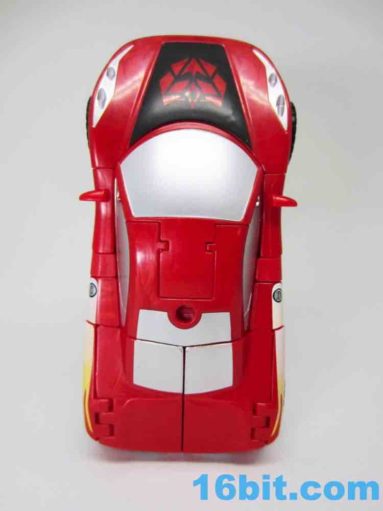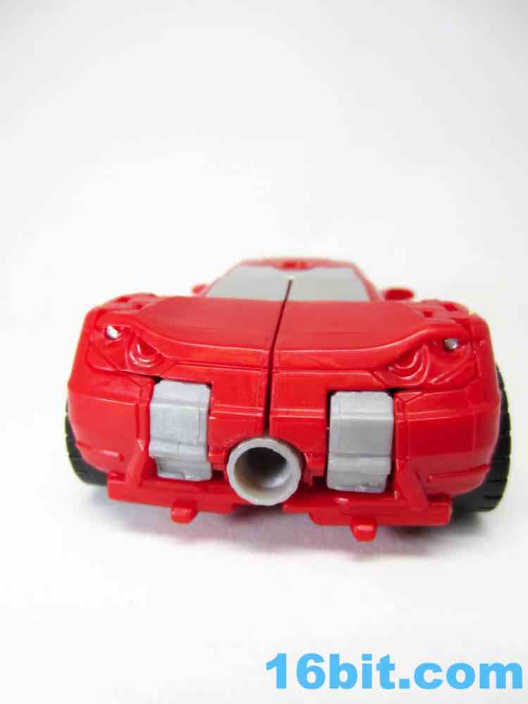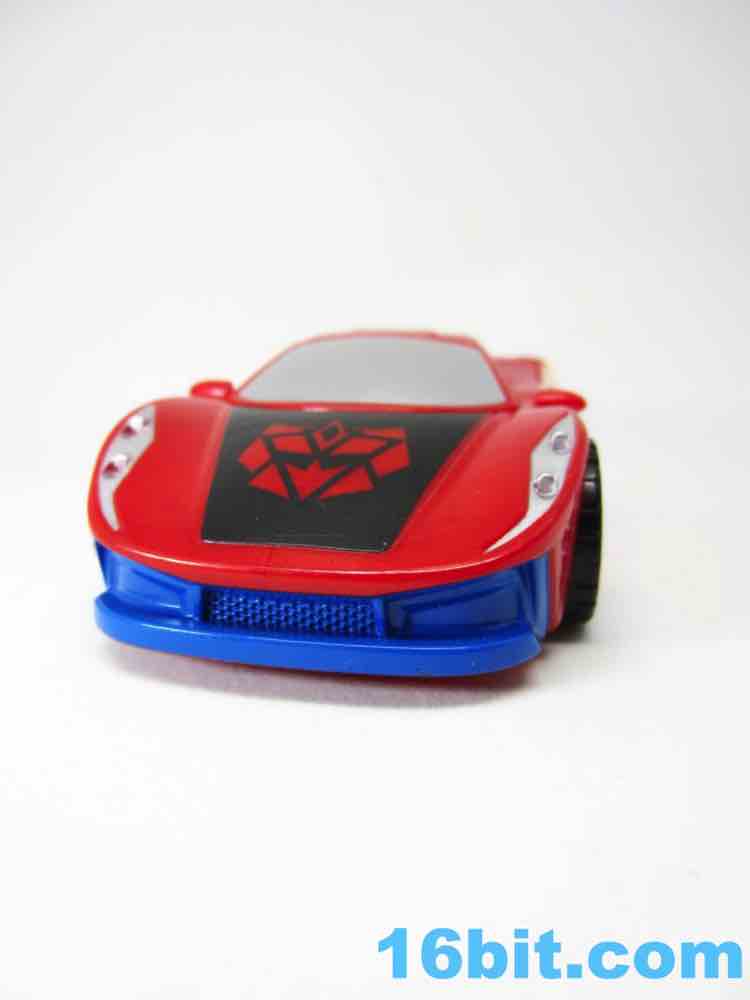 Dead End is doomed to be confused for an Autobot at first glance. The previous Dead End [FOTD #1,364] was molded in a wonderful dark brownish red, while this one is a chipper, cheerful red with a bright blue that is pretty stunning and more interesting than the aqua color on the original toy prototype's box art. Add in the yellow face plate - a decent match, to be sure - and you've got a pretty fantastic figure. Not only does he have the G2 Decepticon emblem on his chest, but the car mode has two very small ones as part of a comet-like stripe on each door. Much like Breakdown, Dead End sadly dropped the goofy neon name sticker on the roof of the car - so all you have is a fairly tasteful vehicle with bright silver windows and a wonderful red and black hood. It's the perfect G2 update that, for better or worse, drops the eye-burning spices of the original. I still like it, but I'm a firm believer that there's no such thing as a toy that's too ugly.