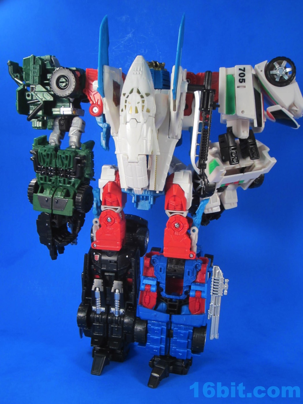 When I saw the Sky Reign wave with Trailbreaker, I have to confess I rolled my eyes a bit. Hasbro has somehow given us (so far) six complete teams at retail making the use of effectively 9 different limb mold designs - some were reshelled, sure, but when you get right down to it the 38 Deluxe limbs we've bought in the last year are effectively only 9 different transformations. Seeing a second wave based on early G1 Autobots seemed a little much, particularly when the notion of building a combiner team out of Sky Lynx is one of the most ludicrous ideas since, well, the original Sky Lynx. And naturally Hasbro wants me to eat my words, because Trailbreaker turned out to be pretty great. I won't say it's the best toy ever, but I like it more than the pretty decent Thrilling 30 Trailcutter [FOTD #734]. They're just very different - the older one was a bit chunkier and bulkier, while this one has retooled forearms, a new head, and surprisingly new combiner fingers. It's a little skinnier and it just works.