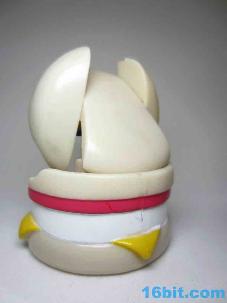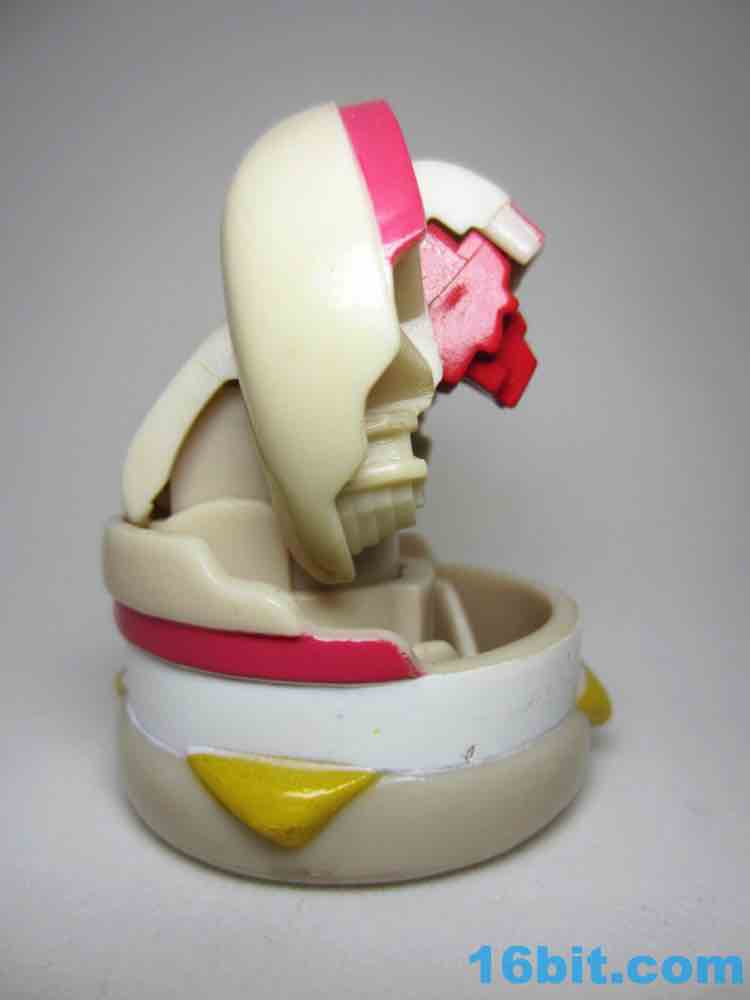 From the first year of these things, I got three robots - and at the time I don't think I ever actually had a McDonld's milkshake. I still haven't had an Egg McMuffin, but that was the first robot I remember getting and not being overly thrilled by it. An english muffin has been rendered in plastic with cheese and an egg thing that looks like Oreo filling and... I don't know what the red stuff is. Don't tell me. I'm better off. There's not much too it and you can probably make jokes about people mistaking this for the actual food and it tasting better, but that sort of thing is too easy and I certainly think better of you as readers. It looks acceptably like a stylized version of the edible breakfast item, and is probably about the size of the aforementioned Oreo - just thicker.