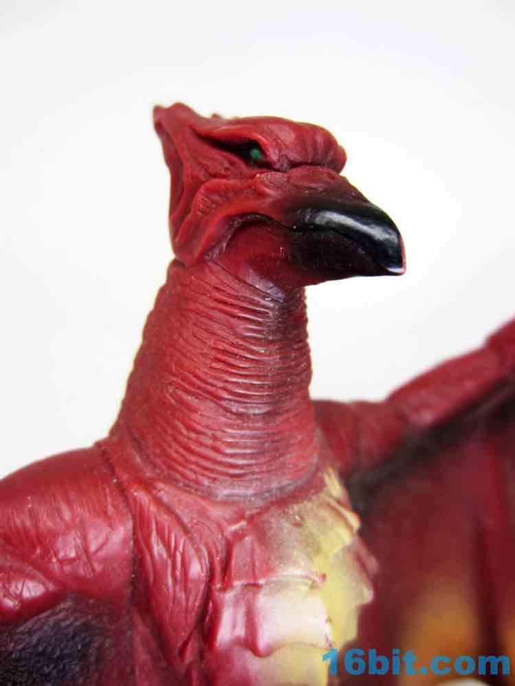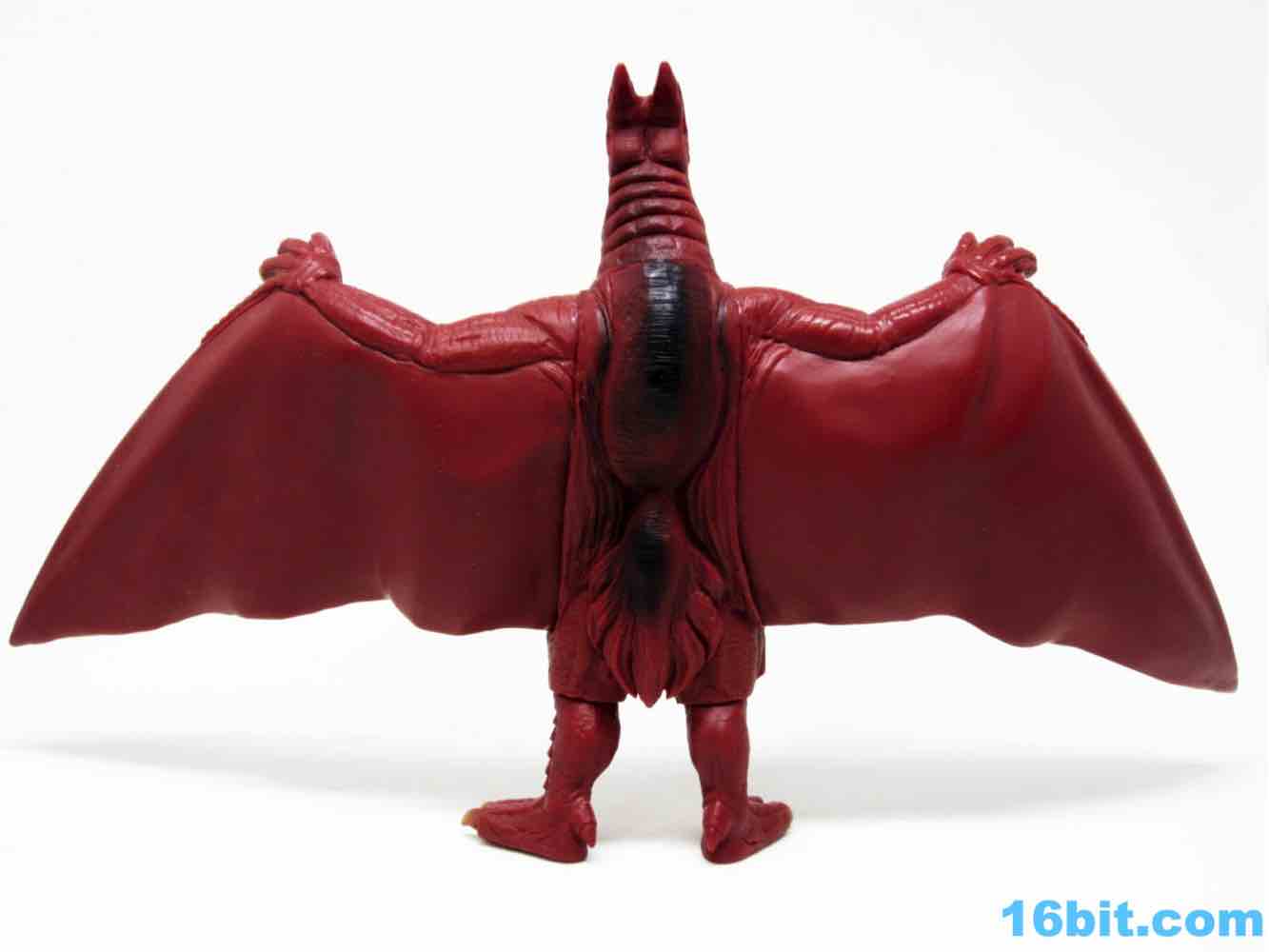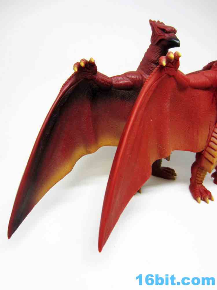 Of the various figures I've bought, Rodan has the least and most inconsequential articulation. Rotating knees are about as useless as a joint can be, and with his wings and thick neck he's not doing a lot of moving. It's a hollow figure - you can squeeze the air in the wings if you want - and they're scraped with tons of leathery detailing. The head is loaded up with wrinkles and a fine beak.