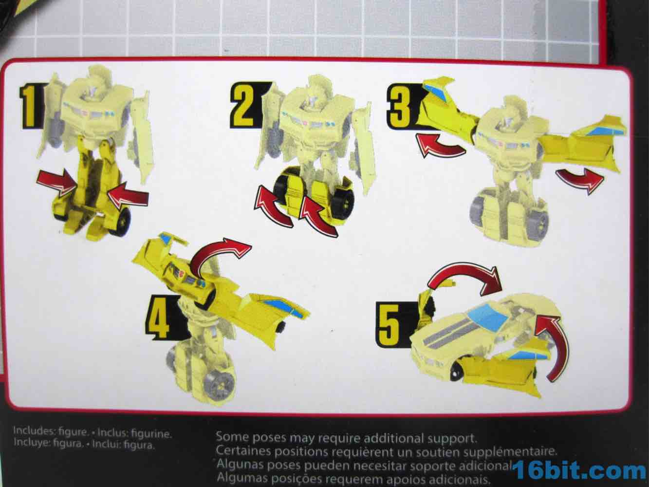While most fans in the 21st century feel like you can quickly and easily get pretty much any new toy, that's not always true. This Bumblebee was sold in, it seems, South America and China but all US supplies came from grey-market imports. Mine has China labels on it, the shipping carton was clearly designed for the Chinese market. Hasbro.com does show these toys as being available in the USA, but after nearly a year it appears that isn't going to happen. I got this figure - and the rest - through a small online shop which I had not previously heard of before, at a roughly $10 mark-up over the US SRP. Due to the toy's size, I'm going to say it's largely worth it. Bumblebee comes through as a fantastically weird figure that almost seems like it could be a bootleg given the strange head and generally kibbley proportions.