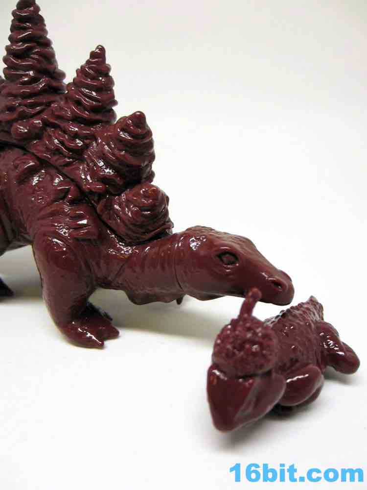 The head is cute, the eyes are big, and the textures are charming. The plates look a lot like little trees - and there are bushes and rocks along the sides. His skin is nicely textured with wrinkles and warts. The claws are pointy but not sharp, and the figure makes a delightful hollow sound when you tap it. It's clearly a higher-grade material than your average baby toy or dog toy, and the design is unquestionably clever. Still, I think I probably should've pulled the trigger on a fancy painted version back when I had the chance - this is a gorgeous design that could probably hide a few shortcomings with some pigment. Oh, and he has a friend!