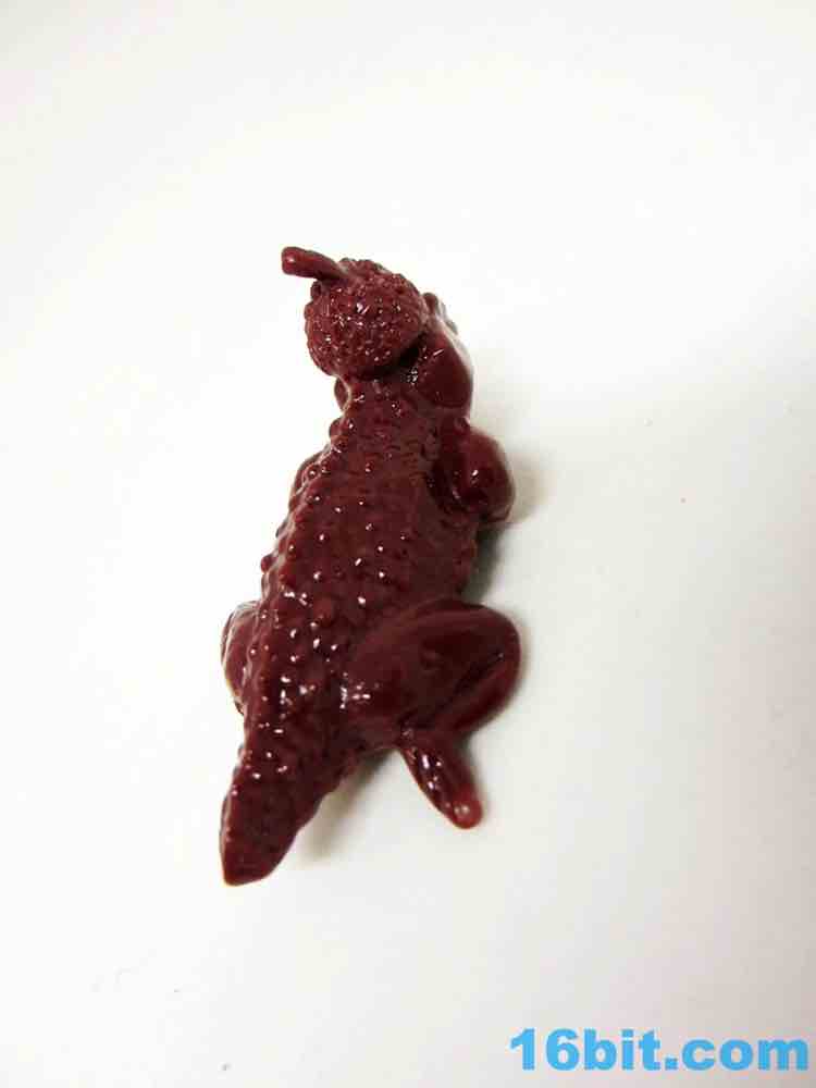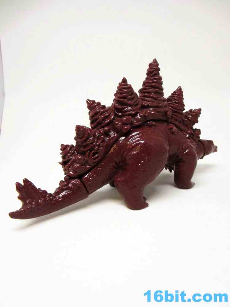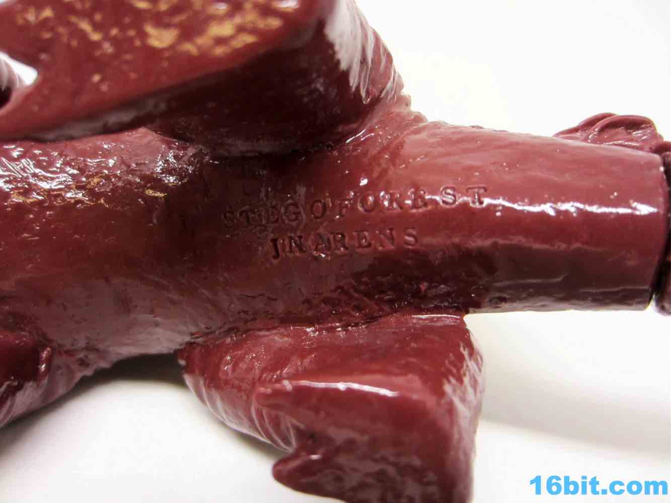 The 4-inch tall, 7-inch long figure is a marvelously creative design that clearly comes from someone who really loves everything a Japanese vinyl toy has to offer, right down to the typeface stamped in the creature's gut. It's clearly labeled "STEGOFOREST" and "JNARENS" in the same font you've probably also seen on a few other designer Japanese toys as well as some Godzilla, Gamera, and Ultraman figures. Mr. Narens did a nice job aping the visual language of the genuine article - this is clearly a toy that is made to look like other Japanese toys.