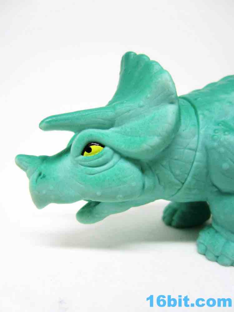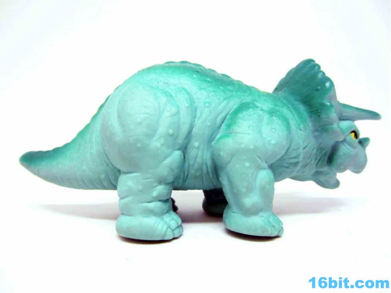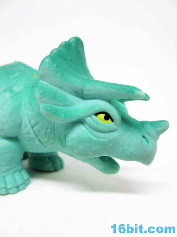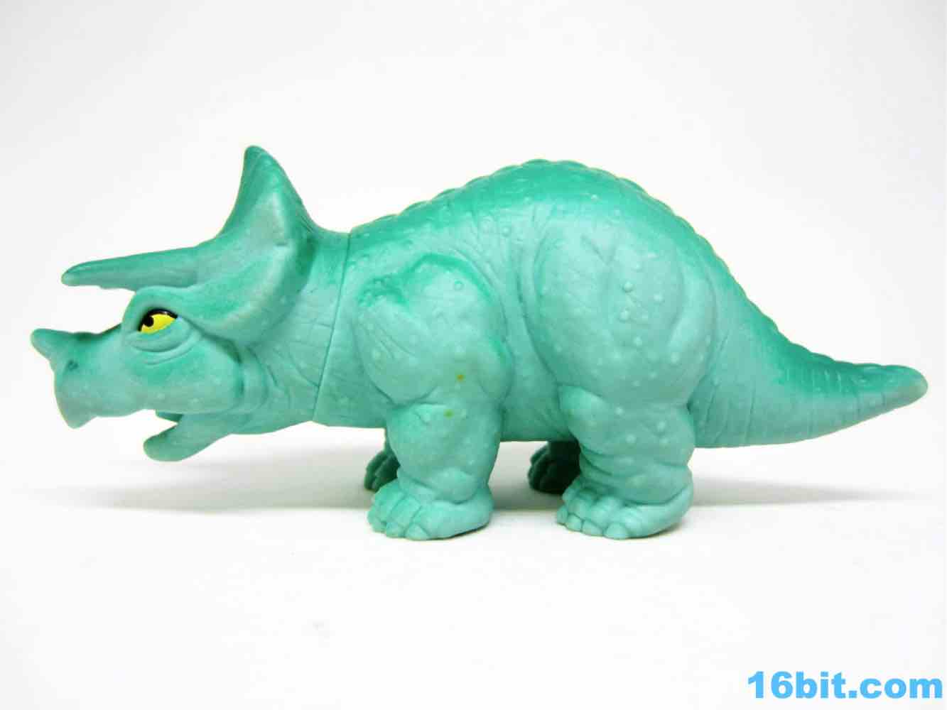 I remember seeing this series of Definitely Dinosaurs toys on TV - Playskool had a full line at stores and Wendy's sold simpler "miniature" figures like this Triceratops as a part of their fast food premium kiddie campaign. The same molds were later used for full-retail toys at Kmart and what have you - this is a quality figure. It's tough to really convey just how good some fast food premium toys were in the 1980s and 1990s, when McDonald's gave away bags of 20-40 LEGO bricks with a meal for two dollars. Or a Bionicle mini set. Or a 3 3/4-inch Batman figure. Or a 4-inch Universal Monsters figure at Burger King. In 2016, this little Triceratops is infuriatingly fabulous. Sofubi collecting is hot stuff and very few big toy companies make cute, cheap hollow vinyl figures these days. Sure, Hasbro did a few a couple of years back and BanDai does some here and there, but they're uncommon - and in the 1980s you could get them in various forms if you were in the right place at the right time. There's not much to this little guy, but when you compare it to yesterday's nifty and creative designer Stegoforest toy, it just makes you angry.