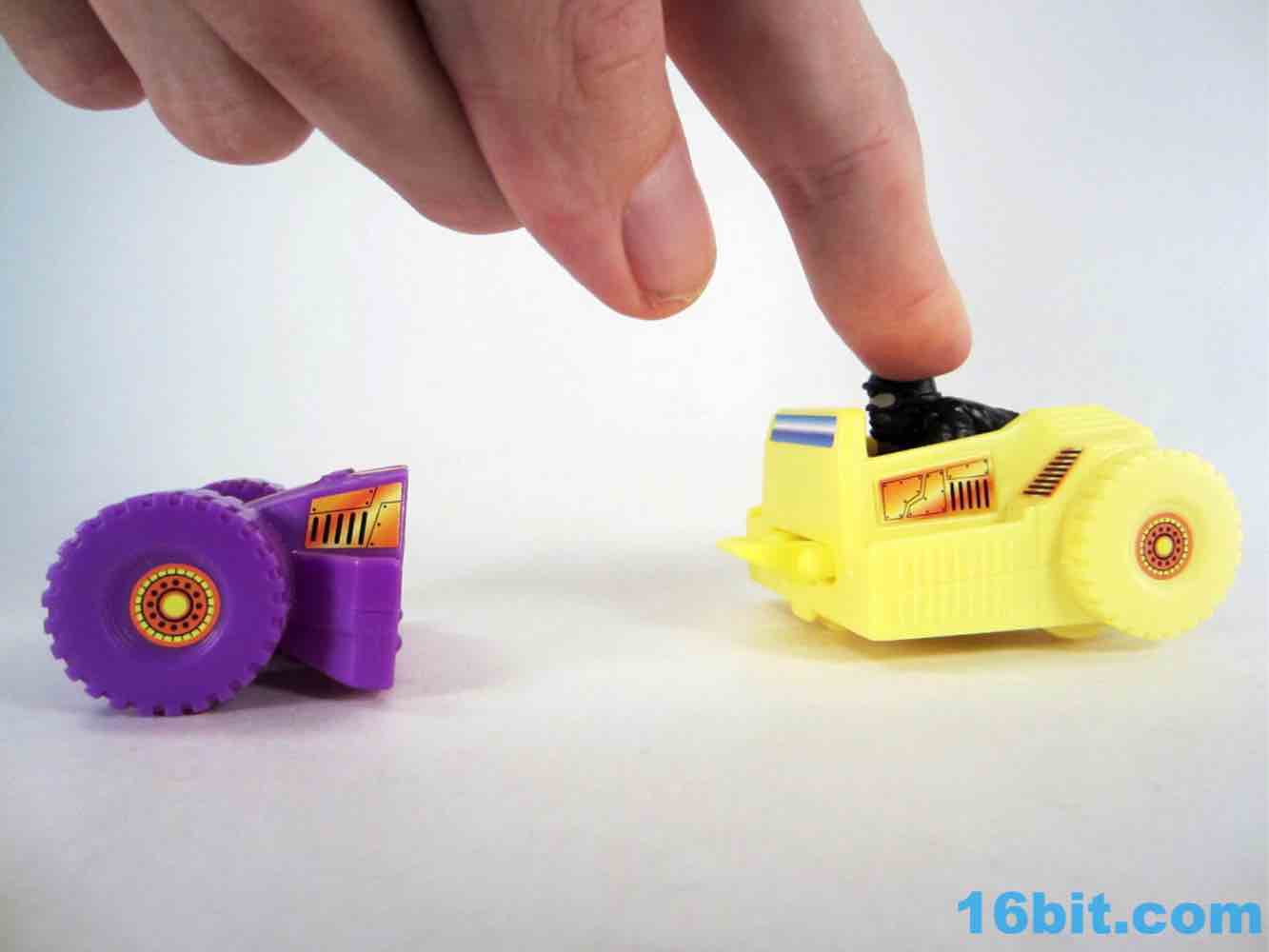 The action feature is bizarre on all fronts. The purple chunk launches off when you push down on the black driver, but why? I have no idea. It just does. It can swap with the other vehicles in the promotion, but again, why? It feels like something you'd have found at Burger King in 1992, but weirder.