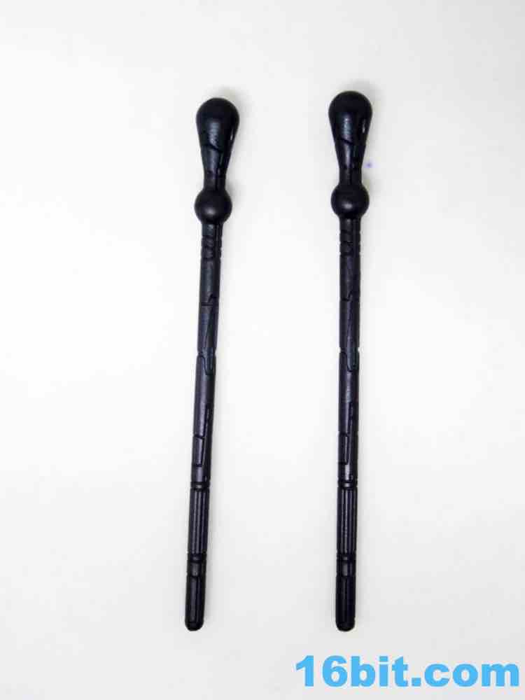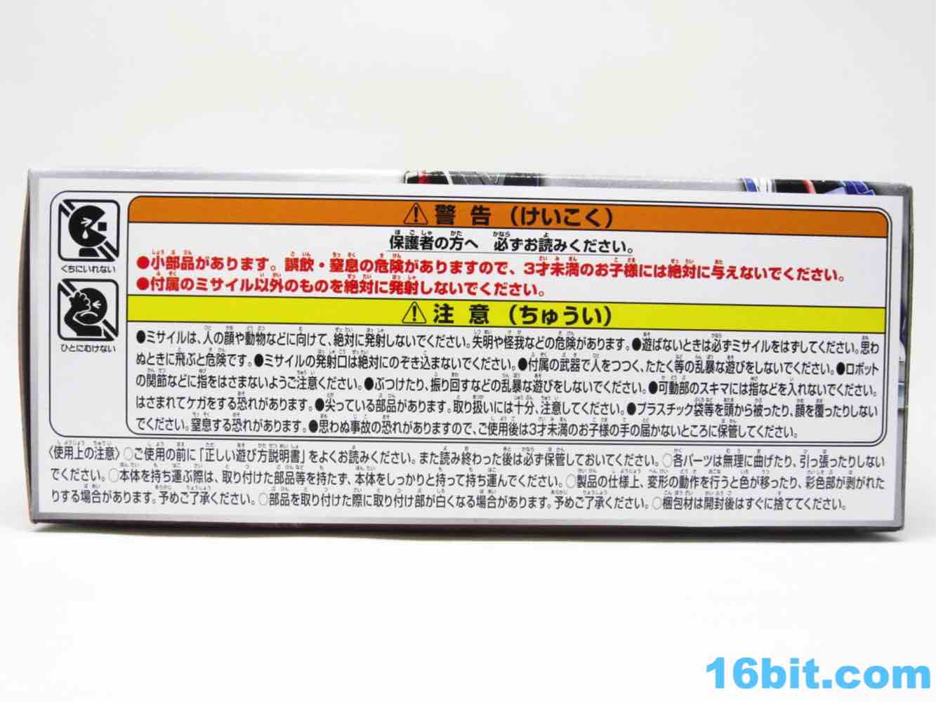 With some silver on his knees and a swell matching grey plastic for his thighs, the figure looks pretty good - not every figure can put together disparate paints and plastics that look good. All 15 joints seem to work quite nicely, and the silver feet are a nice touch - it does make the figure look like it's worth a few extra bucks. (Not coincidentally, it costs a few extra bucks when compared to the US release of the mold.) The swords store in his wings, and two pretty slick rocket launchers can go over his shoulders or on his back. This is a toy you can actually play with and it does things.