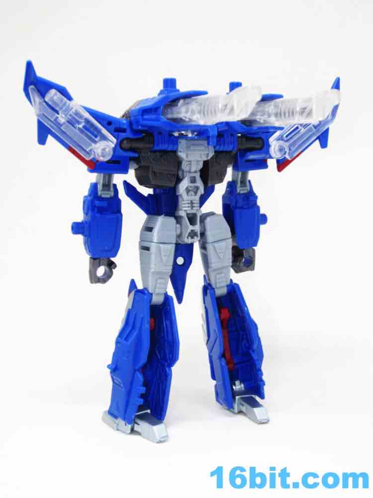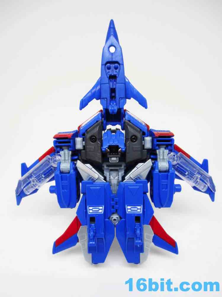 Transformation is pretty simple - fold in the hands and feet, the wings and nosecone rotate into position, fold over the legs, get the arms just-so, and you're basically done. I don't expect you'll need instructions for this one.