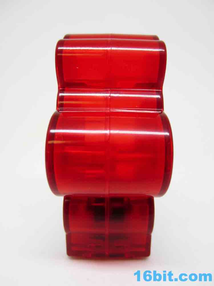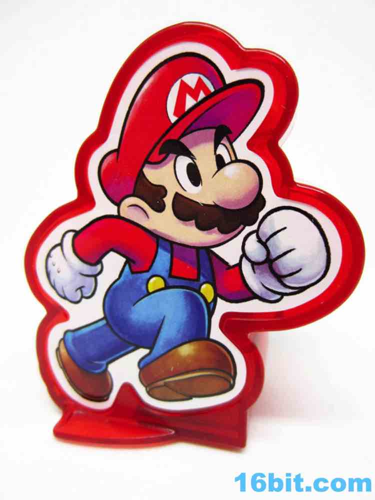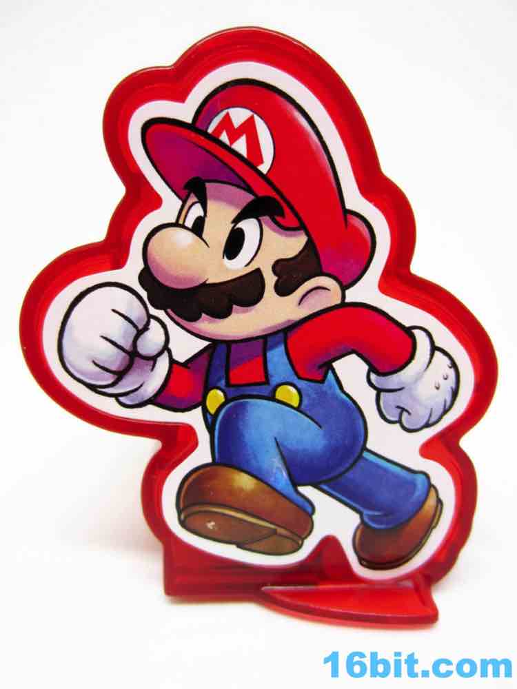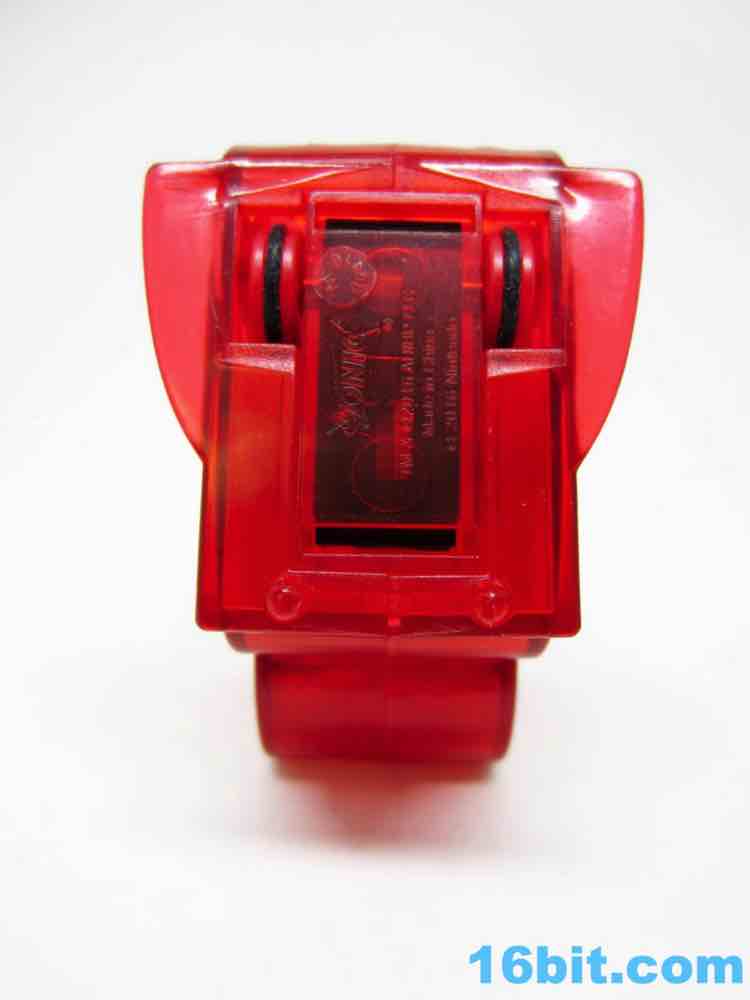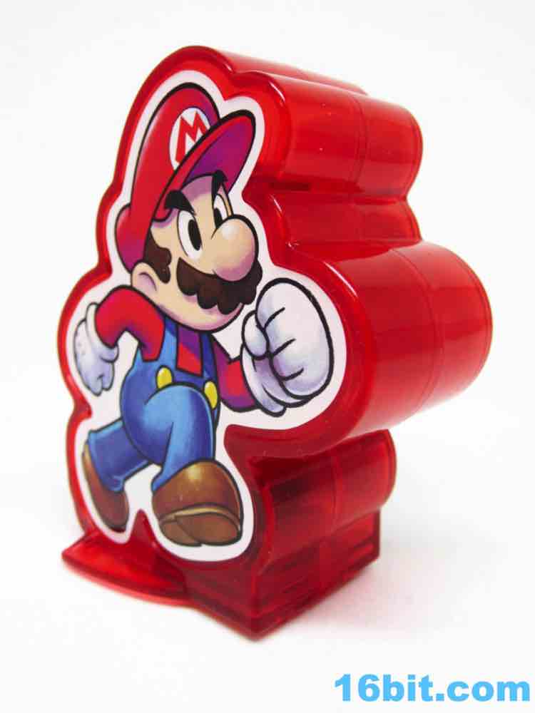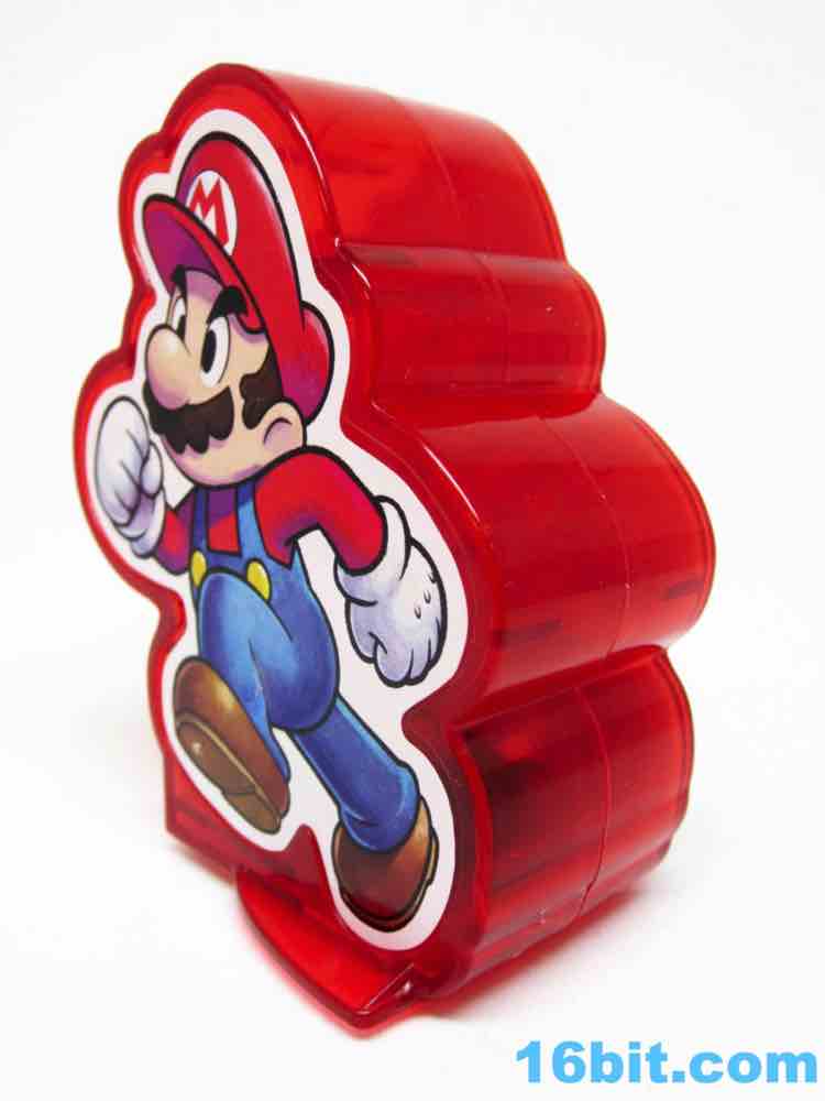 The figure is free with a small burger or chicken strips or whatever, and you can get tater tots and a tiny soda. The chain is not really known for its toy promotions, but it has had quite a few - some licensed, some not. Mario here stands about 3-inches tall and is basically a cookie cutter, in the sense that it's a three-dimensional outline. The figure is a clear red box with a pull-back motor and stickers on either side.