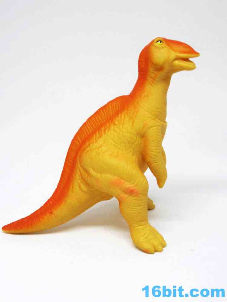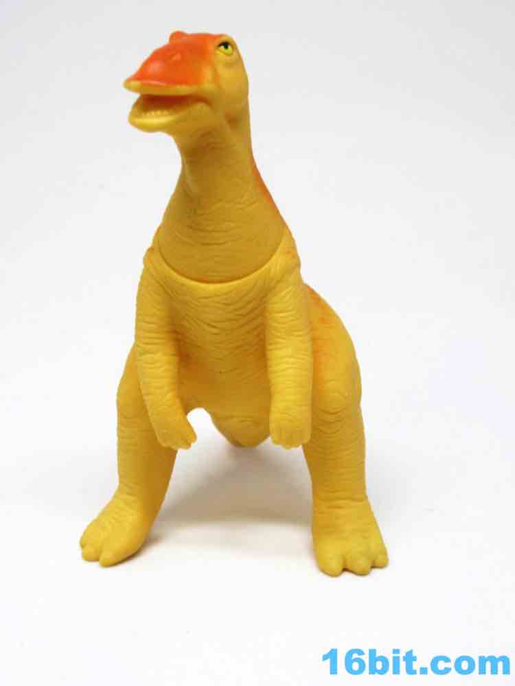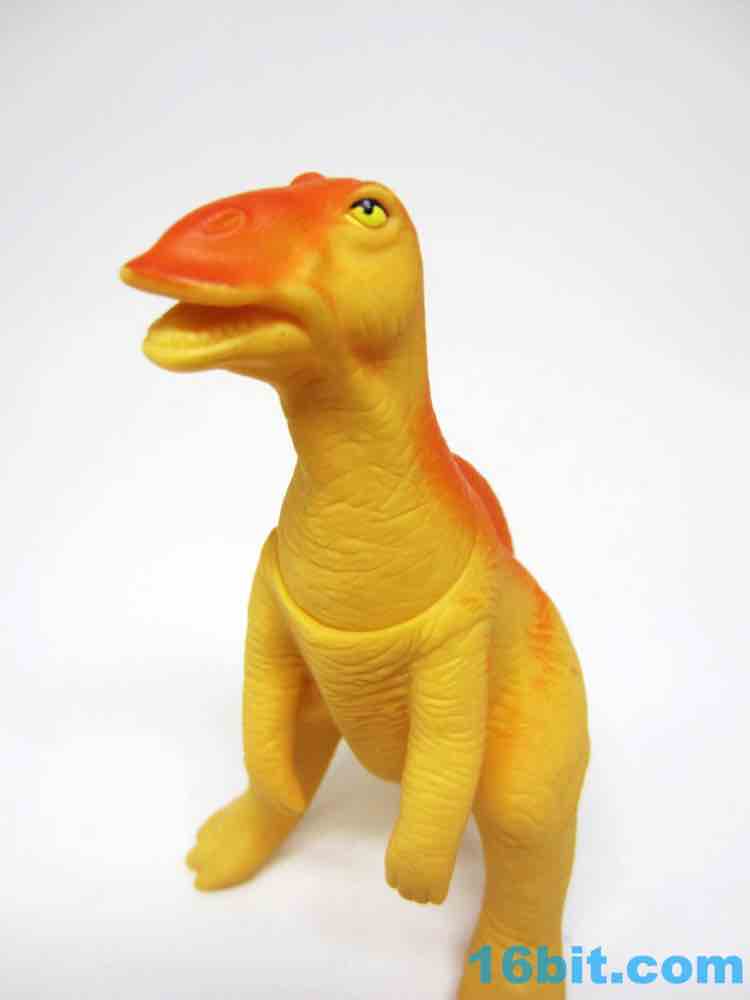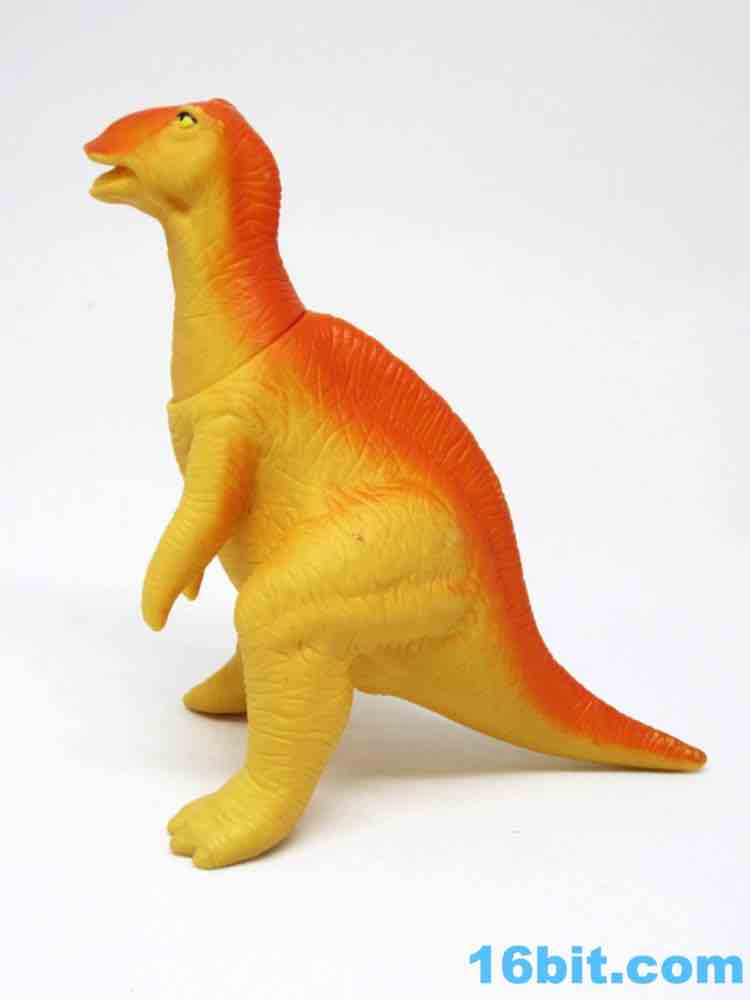 I was always pretty keen on the Definitely Dinosaurs toys despite not having any other than these Wendy's toys. The billde Anatosaurus was, I'm guessing, my least favorite of the three I owned because it's in pretty much perfect condition. (Similarly, my R2-D2 had some sticker wear while R5-D4 was danged near perfect.) The yellowish orange hollow vinyl figure was the very definition of a cheap toy in the late 1980s, but today it would be a designer figure. If someone cranked this out for $40 and made it in different colors in a gallery store, it'd sell. It's not as creative as B.C. Blasters and Stegoforest, but it's an impressive beast unto itself for those looking for "realistic" dinosaurs. (Finger quotes for scientific factiness.)
