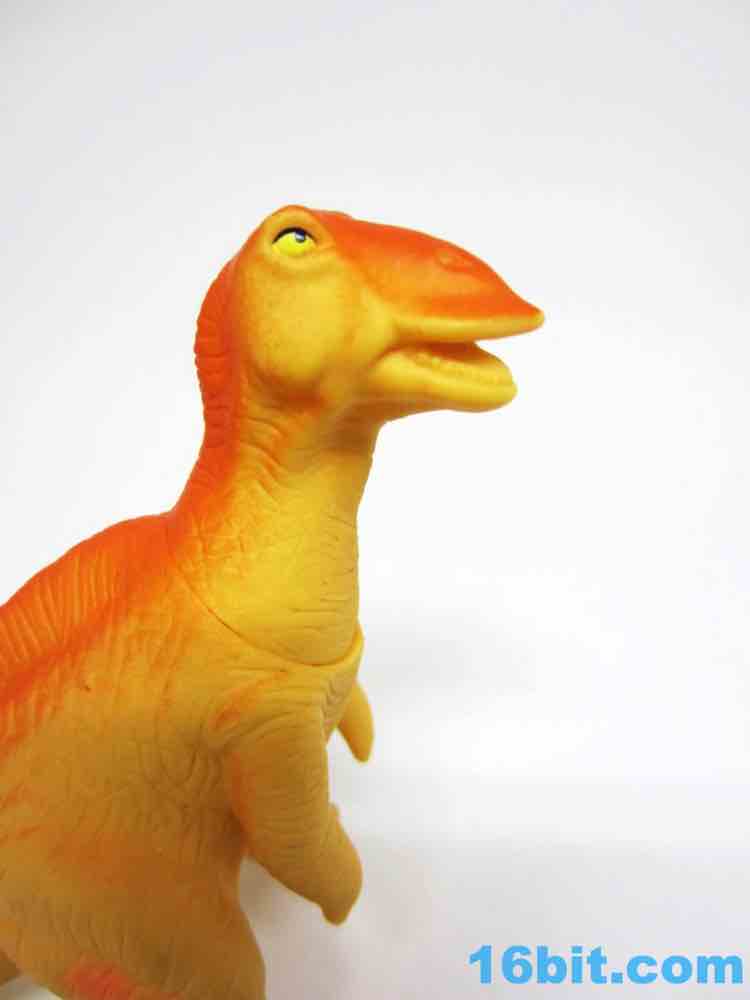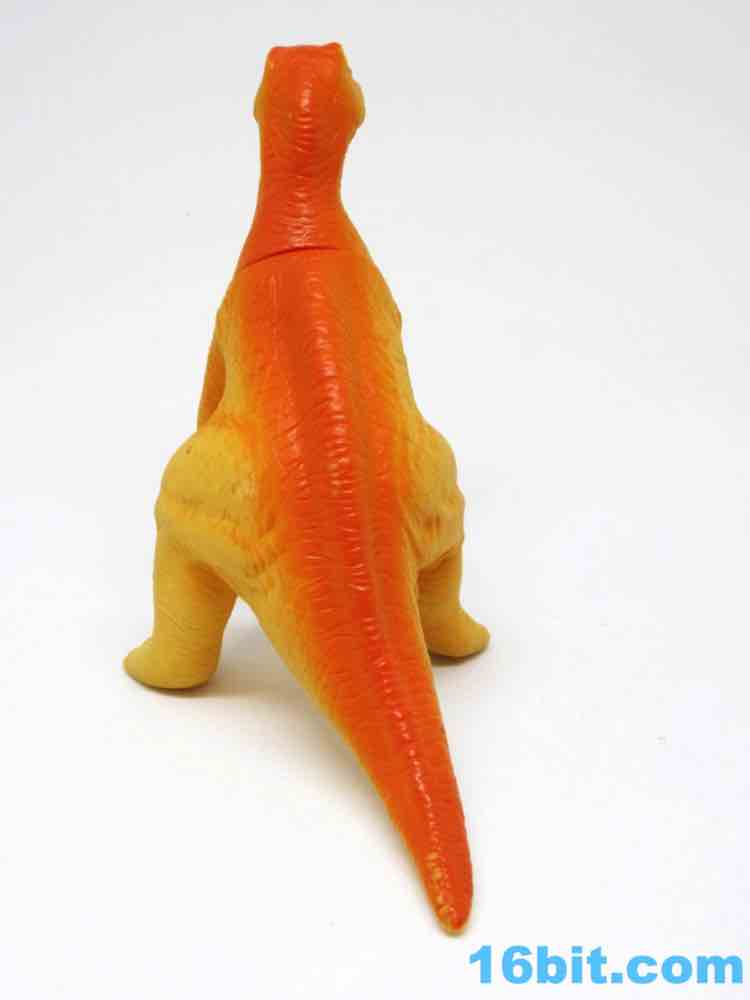 At about 4-inches long, this dinosaur is tall enough to see eye-to-eye to your Star Wars and G.I. Joe action figures. With only an articulated neck, he doesn't do much other than stand around and look neat - the benefit of which is that it's really not much worse than your average dinosaur toy of the era. The full-fledged non-Wendy's Playskool Dinosaurs had more articulation, and Tyco's marvelous Dino-Riders were not only jointed but were loaded with armor, guns, and some even had alien buddies. What I'm saying is that it was a good time to be a fan of dinosaur toys.