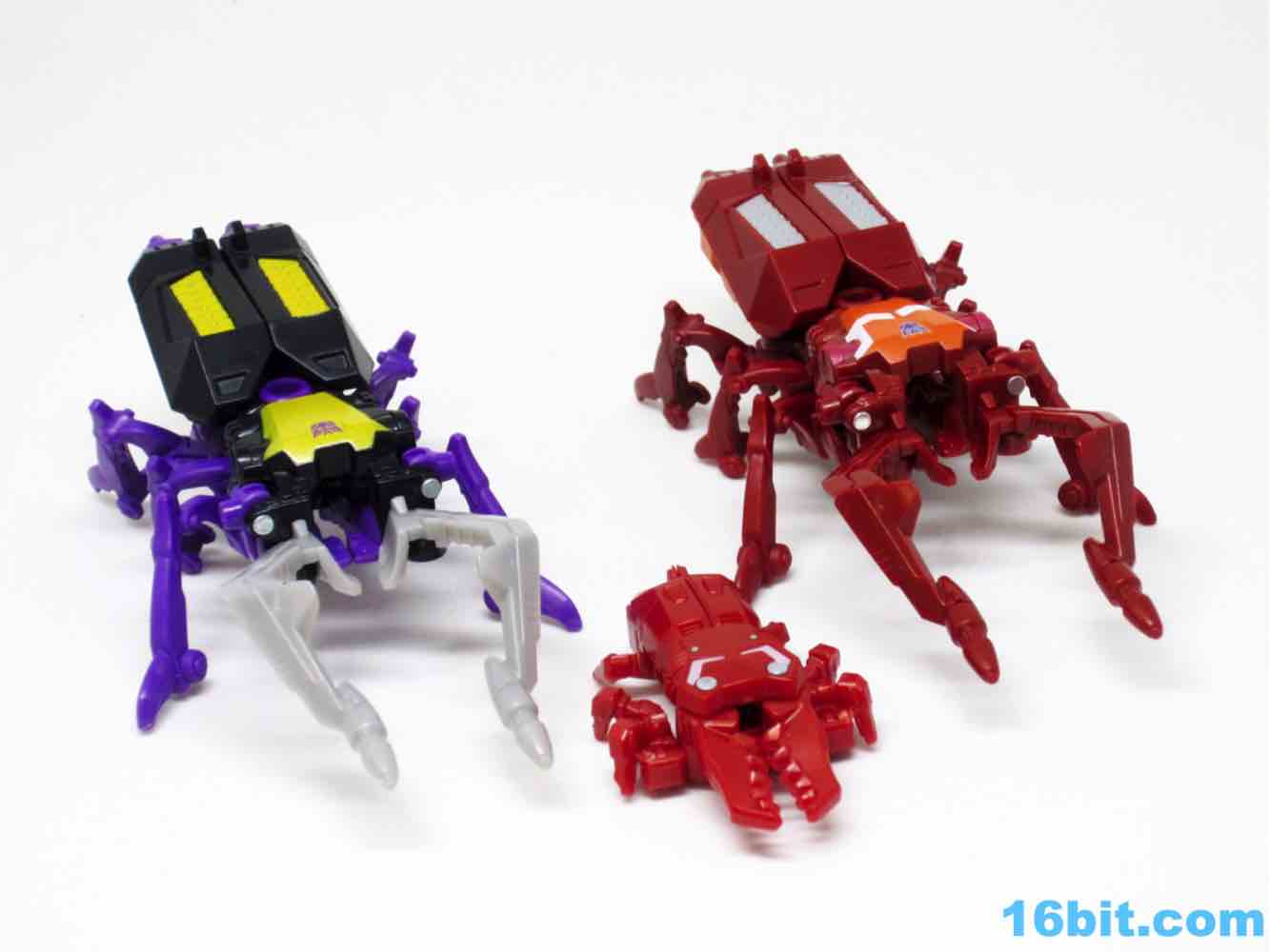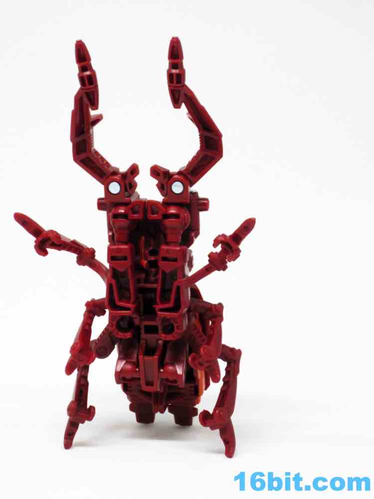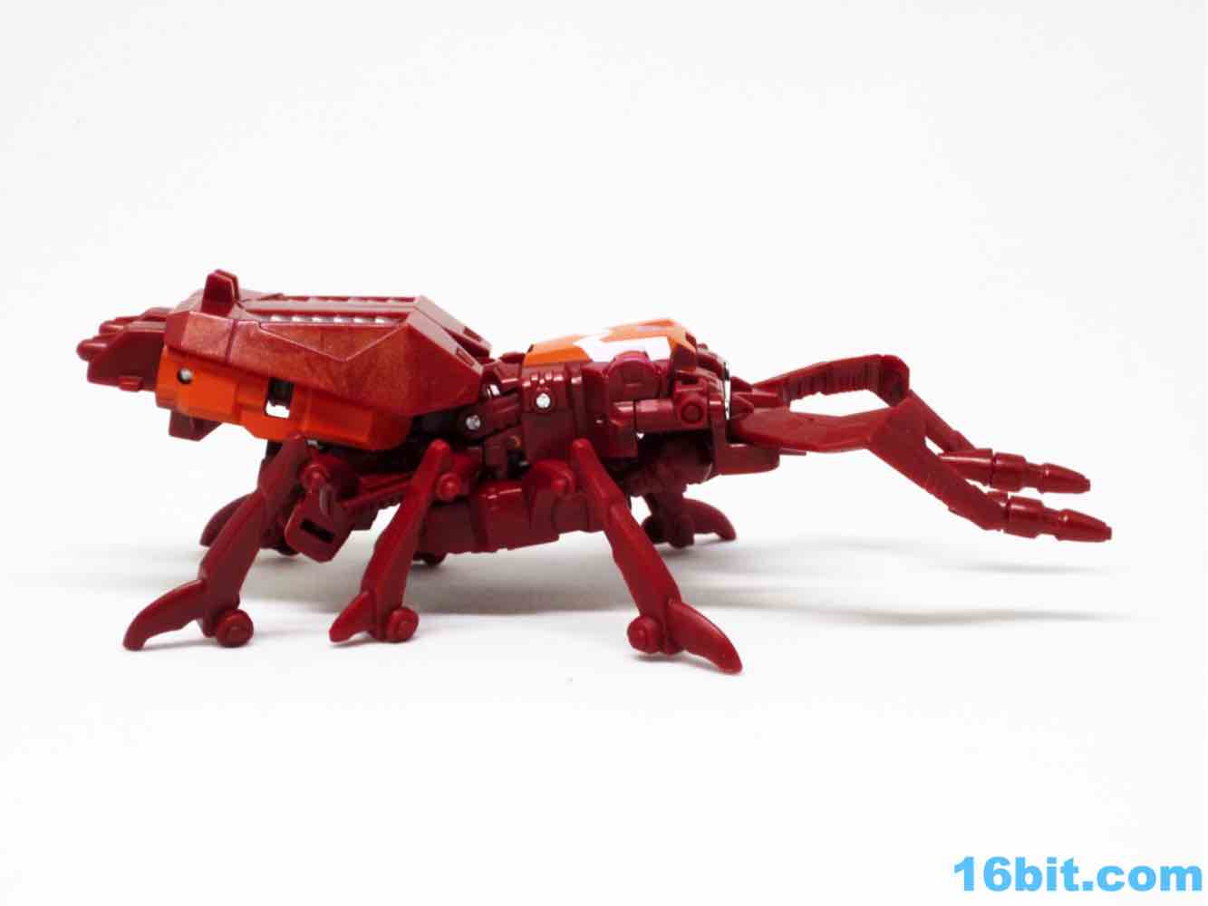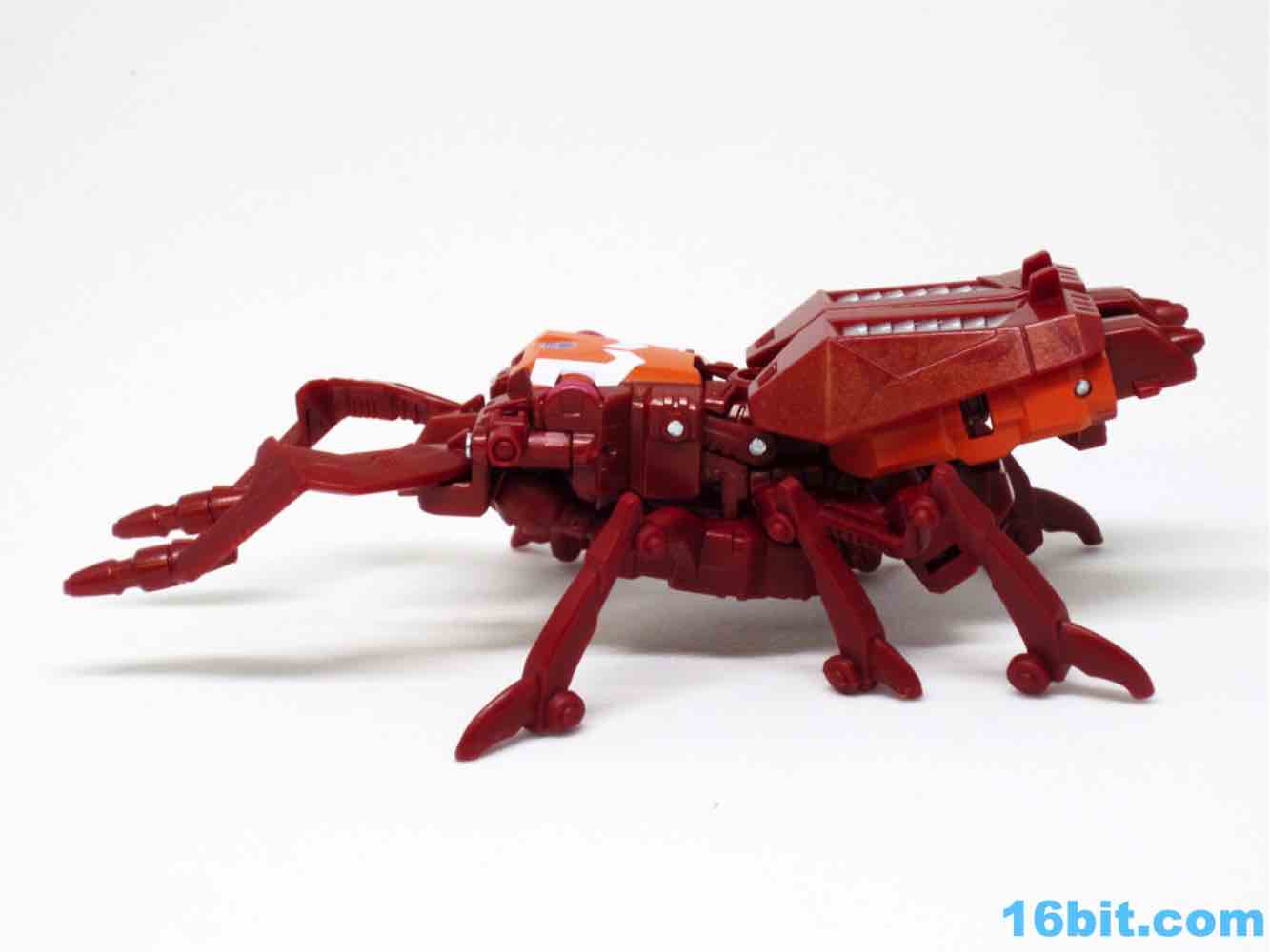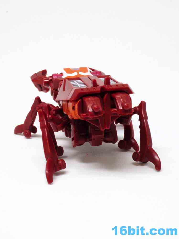 It's mostly a single color with some nice highlights - like the original. It's a little more brownish orange than the original brown, but it's charming. Transforming him is identical to Skrapnel, and it's a pretty decent transformation for a modern Legends toy since the robot's torso and legs fold up an an interesting way - which is to say, you actually have to manipulate them a bit. The end result is a pretty decent bug, sized similarly to the original trio of Insecticons who, as it turns out, were quite small.
