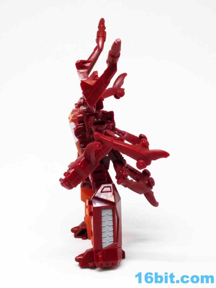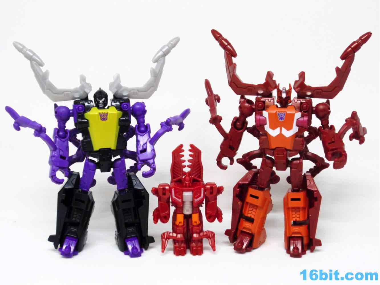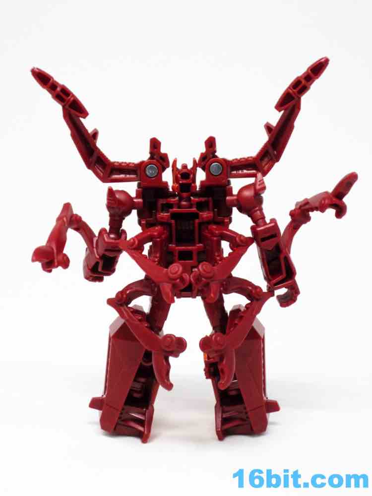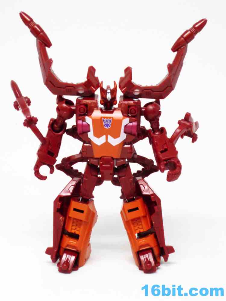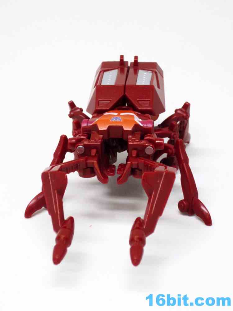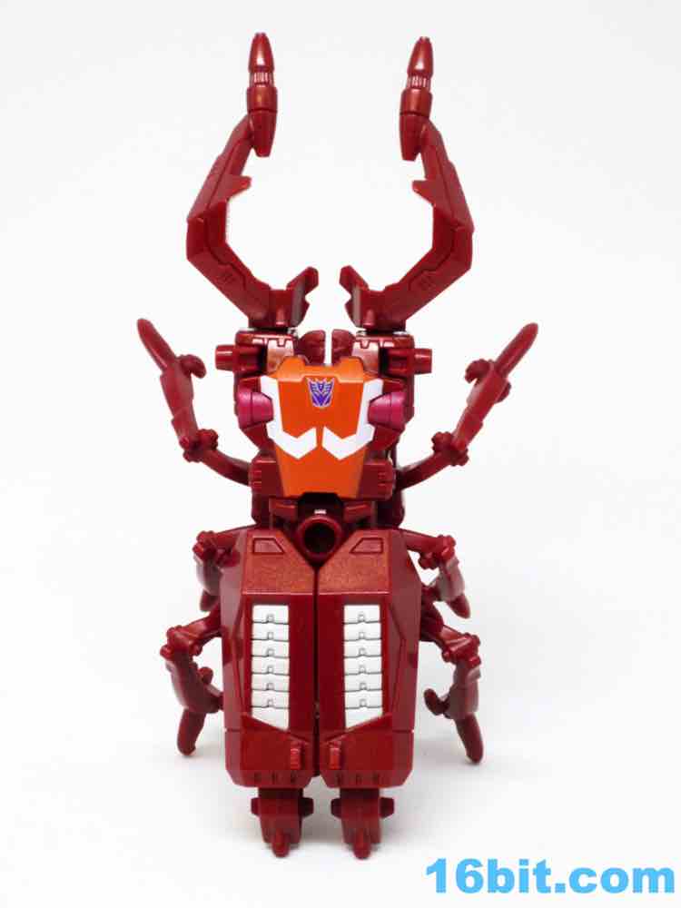 It's mostly a single color with some nice highlights - like the original. It's a little more brownish orange than the original brown, but it's charming. Transforming him is identical to Skrapnel, and it's a pretty decent transformation for a modern Legends toy since the robot's torso and legs fold up an an interesting way - which is to say, you actually have to manipulate them a bit. The end result is a pretty decent bug, sized similarly to the original trio of Insecticons who, as it turns out, were quite small.