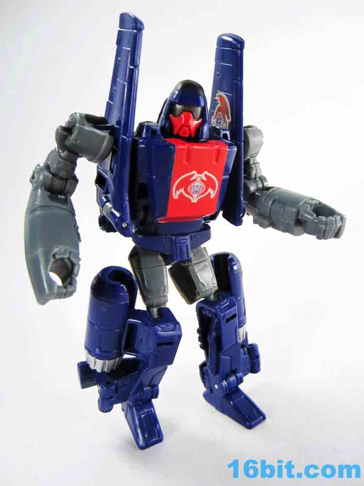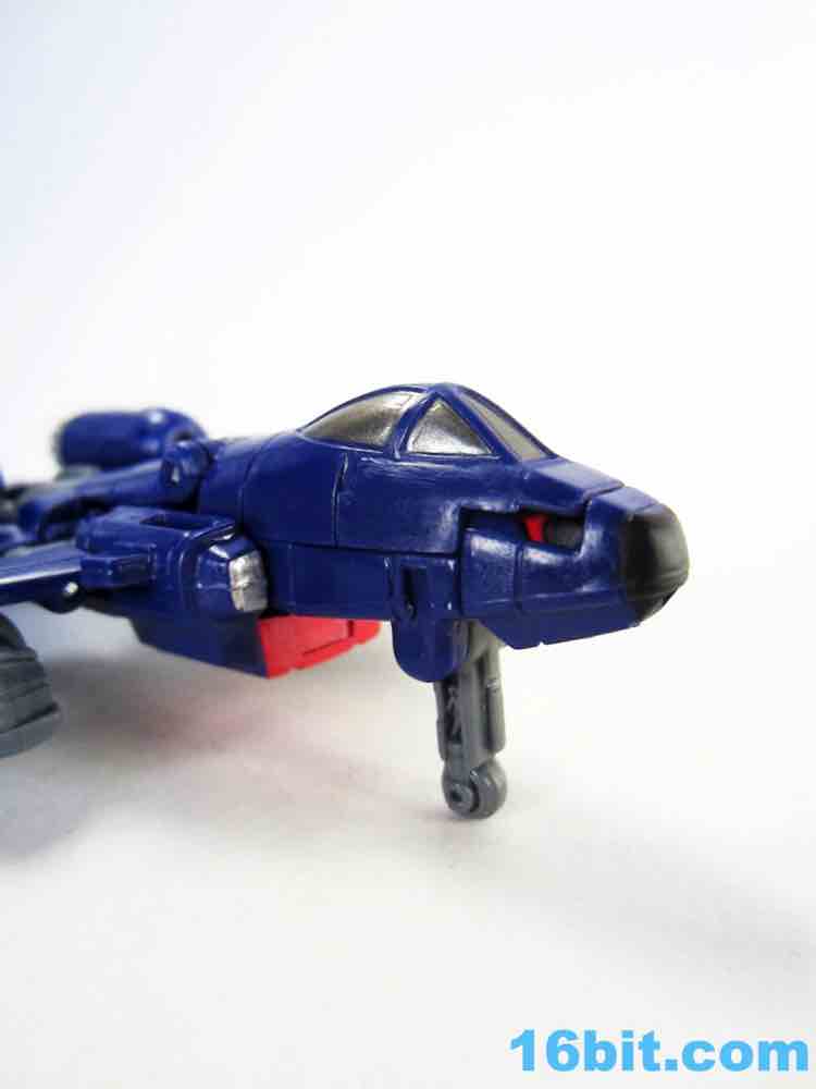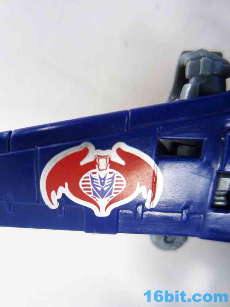 Since Hasbro gave us a Shockwave-as-a-HISS, Skystriker-as-Jetfire-and-also-Starscream, and Vamp-as-Hound, the reverse is rare. Now we've got Powerglide-as-a-Rattler, and he's small and great. The Decepticobra symbol carries over to his wings with a silver outline, shining nicely in most light conditions. The retractable landing gear is nice, and it holds together a bit better than my Powerglide. The aforementioned gun mode ain't bad, but I'd be lying if I said I loved it. His other two modes are just too nice, and small triple-changers can be tough to pull off anyway.