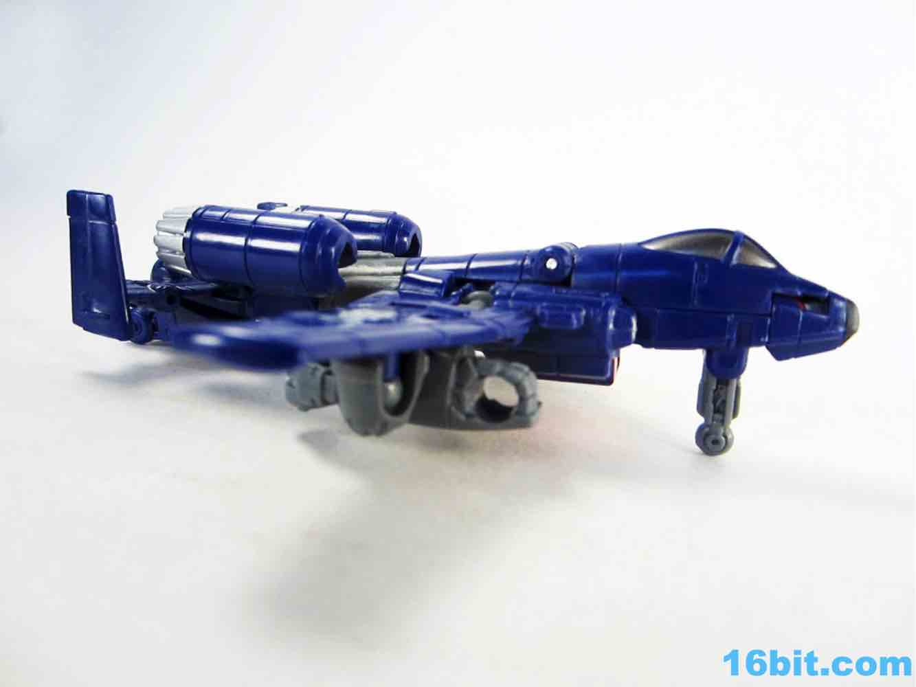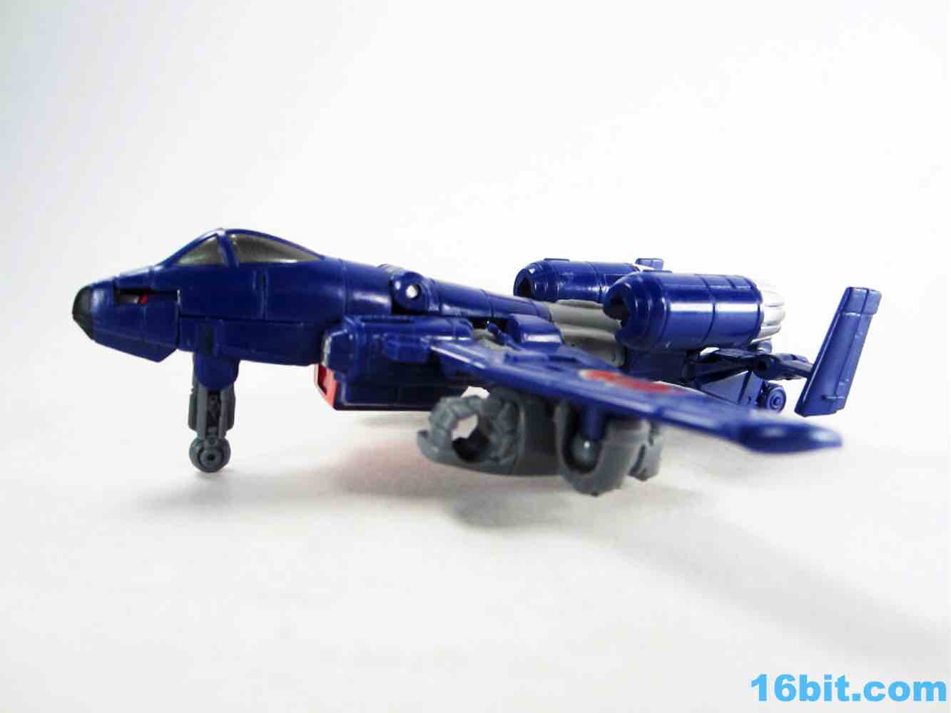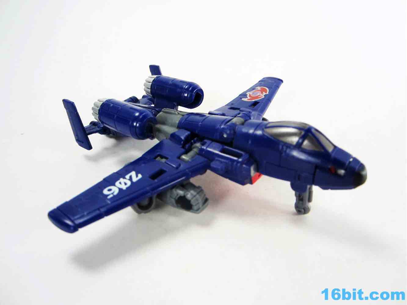 Transformation is a snap - there's a weapon mode and a plane mode. Everything folds up pretty well and I'd say my sample works better than Powerglide. You can figure it out, you're smart. (Well maybe not you, perhaps everybody else.)