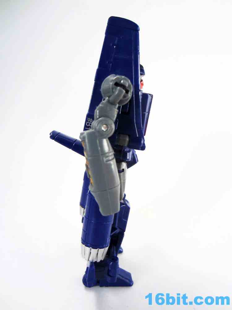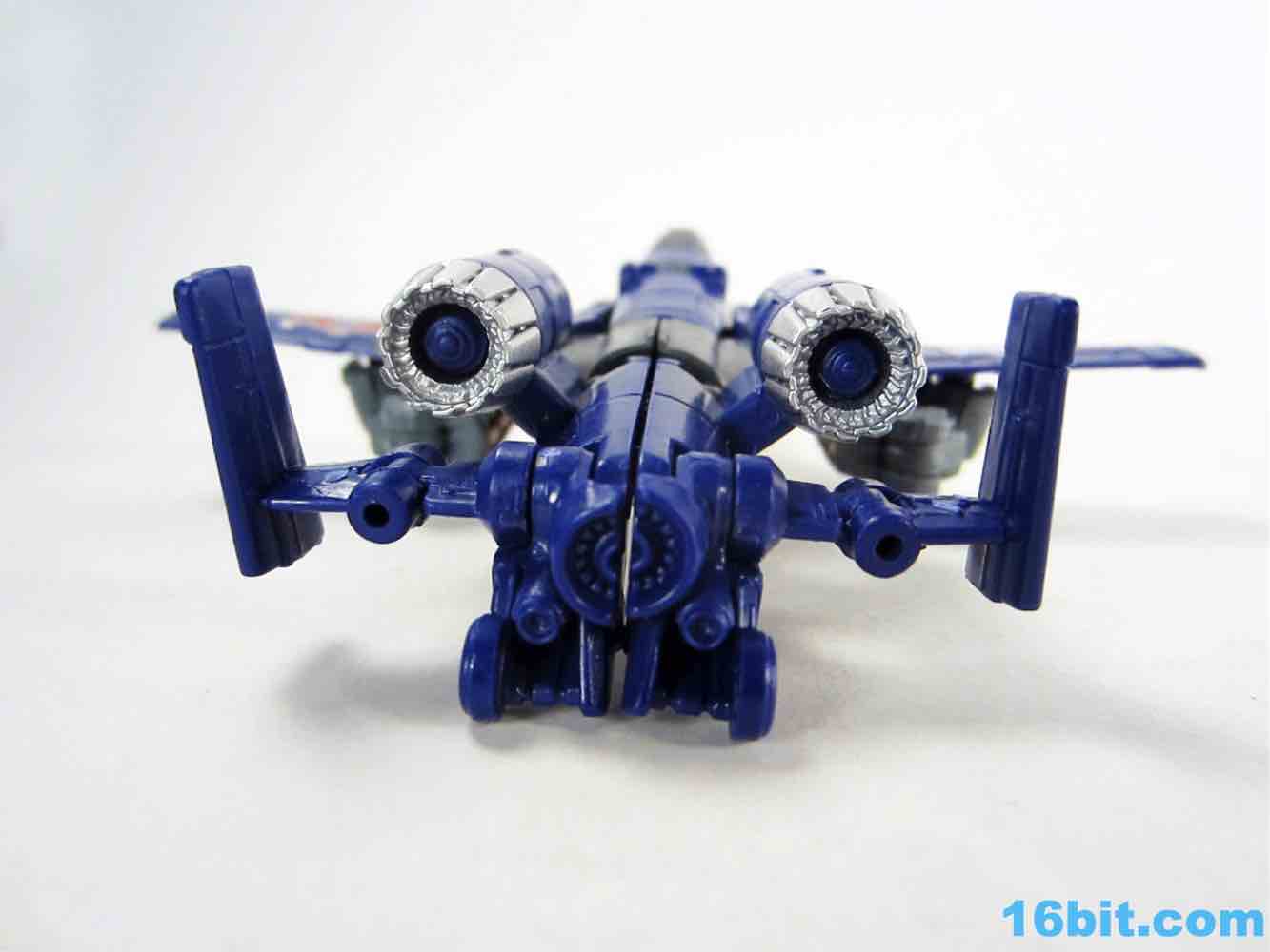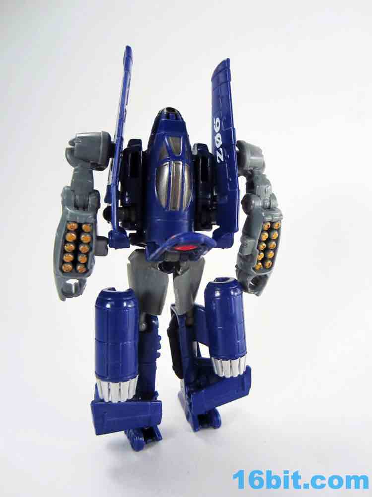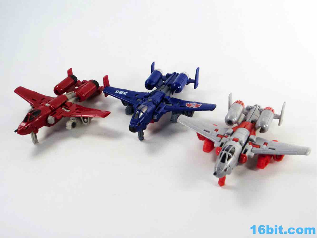 Transformation is a snap - there's a weapon mode and a plane mode. Everything folds up pretty well and I'd say my sample works better than Powerglide. You can figure it out, you're smart. (Well maybe not you, perhaps everybody else.)