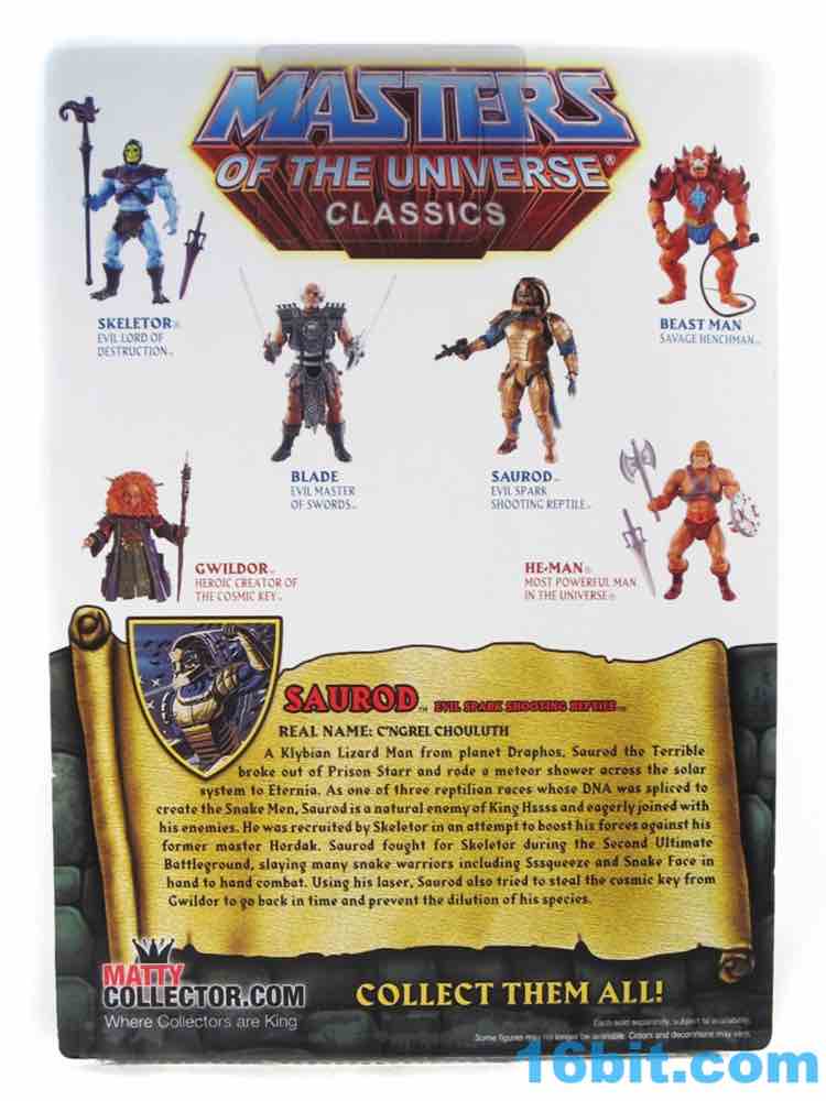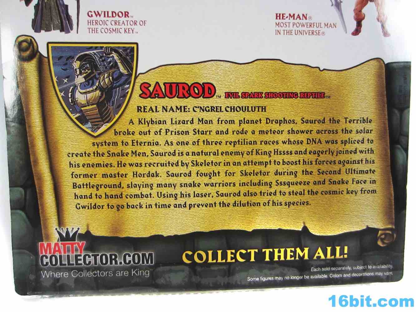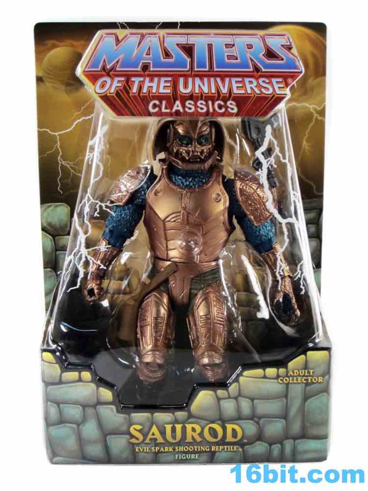 As is the way of Masters of the Universe Classics, Saurod is billed as an "Evil Spark Shooting Reptile" but does not shoot sparks, at all. The original toy had a mechanism, but that sort of thing was engineered out of toys during the Clinton administration. Add in the fact that fans were convinced that articulation always trumps action features, and you get an admittedly good - but not as fun as it could be - action figure geared to collectors that exists solely to put a check in a box so that Mattel could update the original line. This is a very nice figure - but I'd be lying if I said I didn't wish that they found a way to simulate sparks via an alternate head or a snap-on piece.