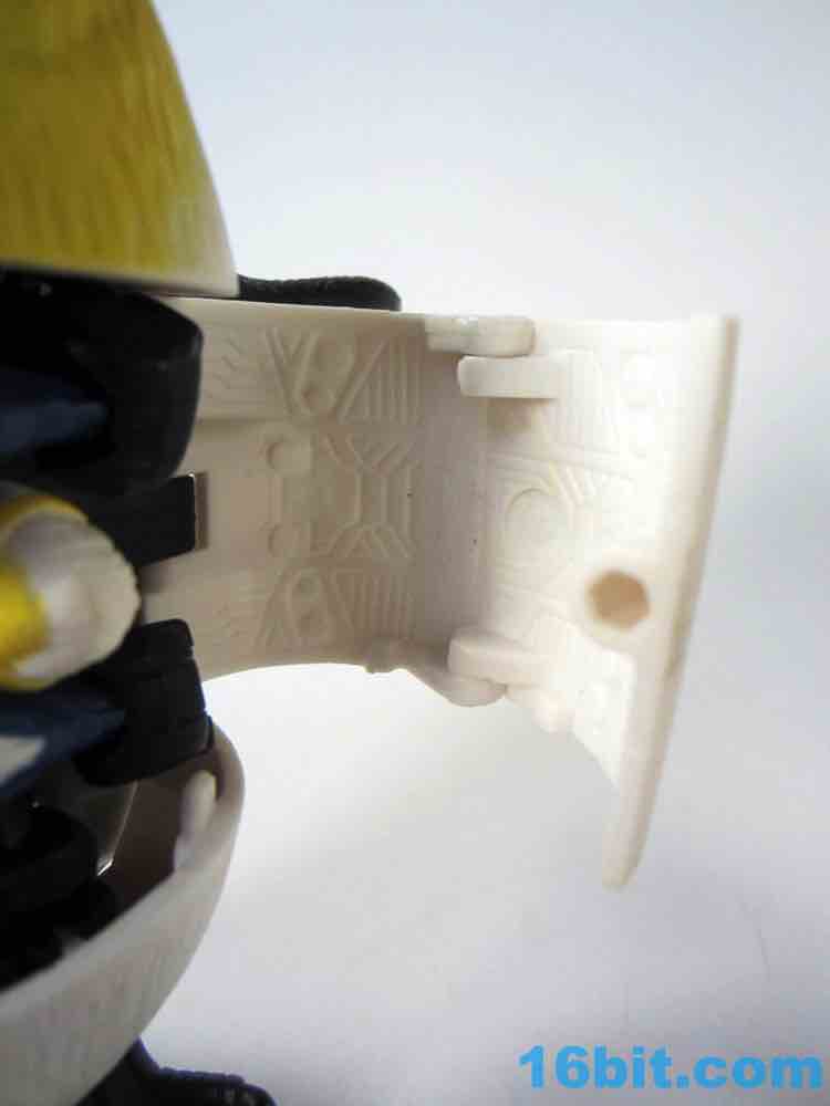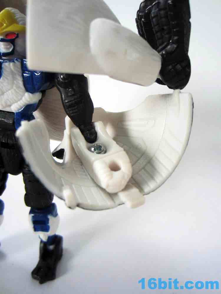 Break's penguin mode is about as articulated as you can get out of a penguin toy - ball-jointed feet and flippers? Yes! Most of the toy penguins I had as a little kid did nothing. There's a rotating head, and a rocket that can be fired out of his butt. There's a "cannon mode" as well, but it's basically just a fractured penguin firing a rocket out of his aft section. The penguin itself stands around nicely and won't fall over unless you hit it with a rock or really slam on a shelf. Even for his era, the sculpting is pretty good - there are lots of feathers, with black paint on his back giving it a chilly, glossy finish. The flippers and feet are molded in black plastic and the end result is a relatively cute toy with red robot eyes that should appeal to anyone who digs this kind of beast aesthetic. For a line that came out after TransMetals 2 and Fuzors, it feels like a bit of an engineering throwback but I don't know how else you'd transform a penguin well.
