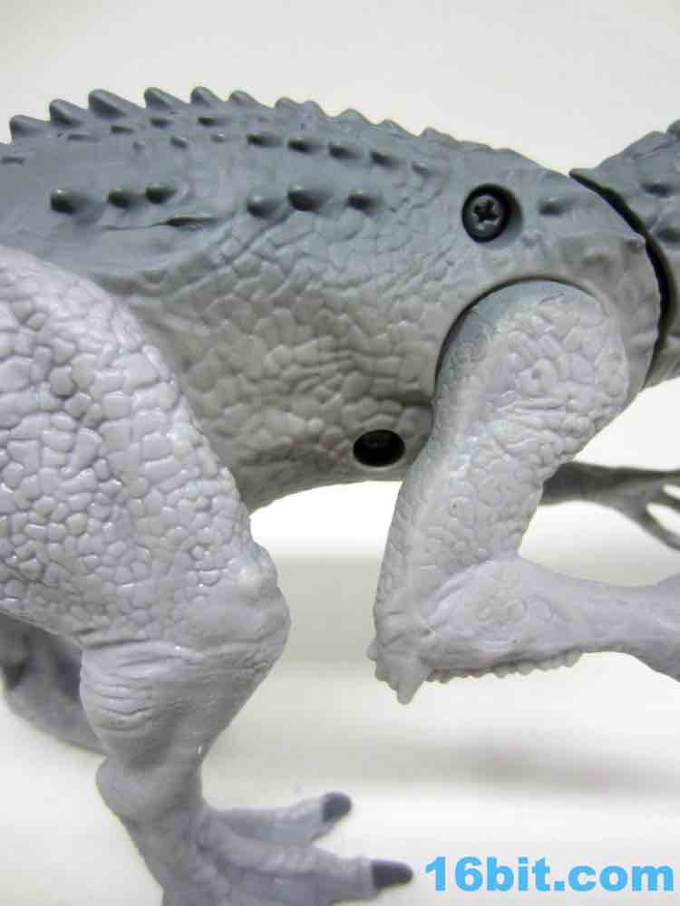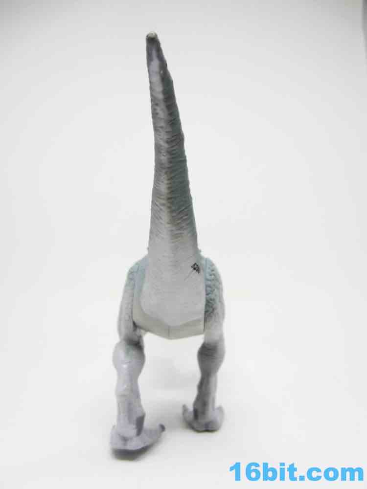 At roughly 7 1/2-inches from snout to tail, it's a decent little gal. She's not huge like the other toys, which sport nifty features and more articulation. This one is just a li'l grey dinosaur with jointed arms and legs, plus a tail-powered neck mechanism. I like it.
