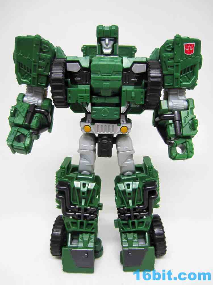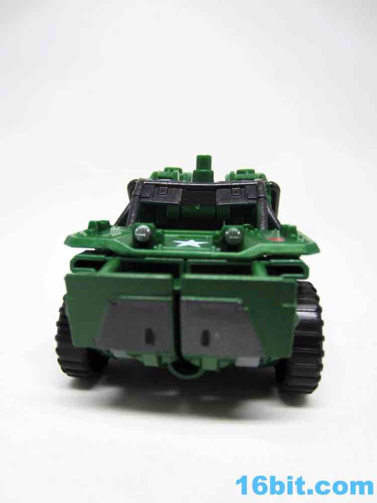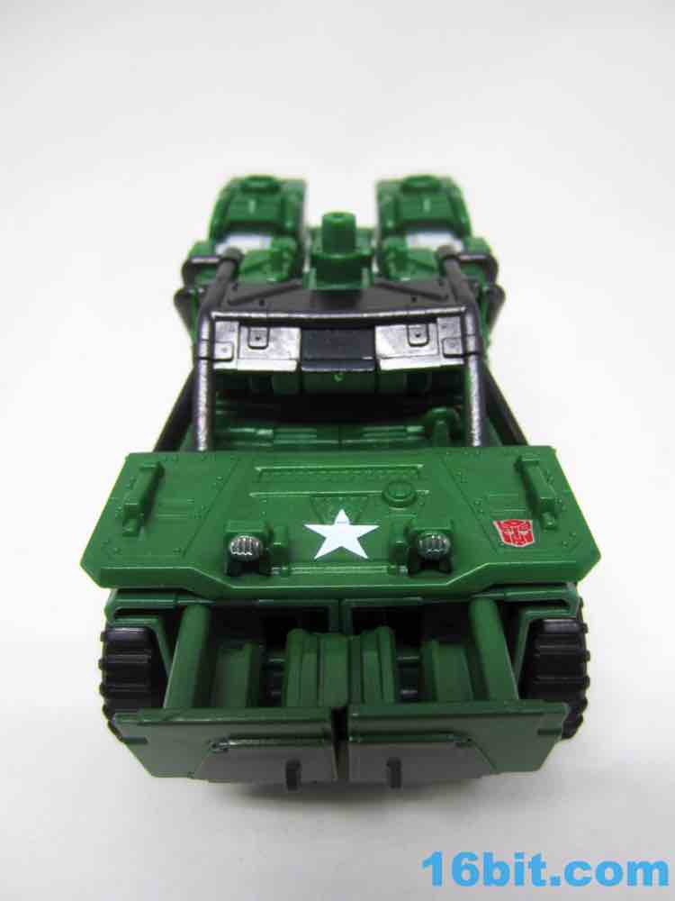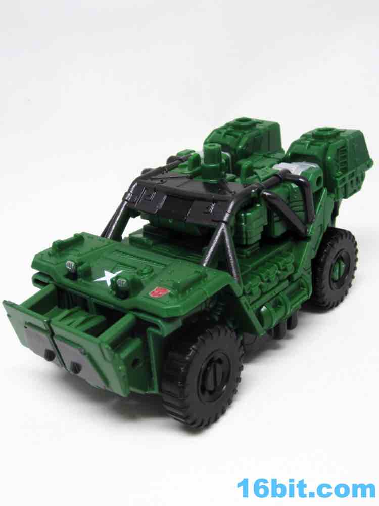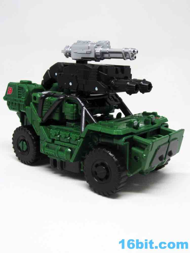 The hand/foot/gun is the same as Swindle's, and it mounts just as nicely. The dune buggy-esque mode is similar to Swindle's as well, but now in a nice rich green color. He has a nice big star on his hood, a tiny little Autobot symbol, and not a lot else.