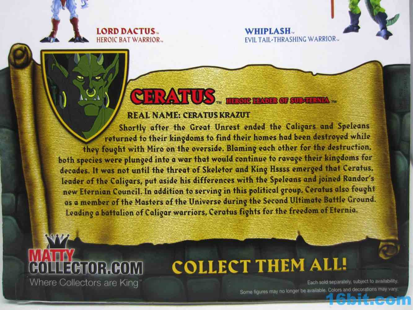 Overall, Masters of the Universe Classics is the rare line that delivers consistency consistently. It doesn't necessarily deliver something wholly new these days, but Ceratus is a figure with a top-notch sculpt, a good accessory, and just plain looks cool. Another 2002 cartoon series person, this guy is of a similar bloodline to Whiplash. There's little here that you haven't seen before if you have another 100 of these dudes (and if you've got more than 5, you've got at least 100) but the Four Horsemen and Mattel did manage to surprise in a couple of minor ways that we haven't seen before or since. But he's still the same size with the same basic articulation we've had since the beginning.