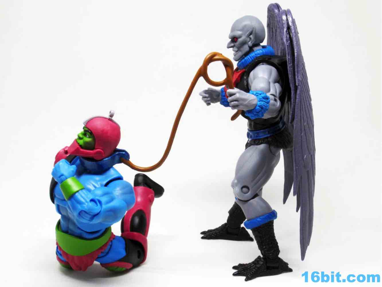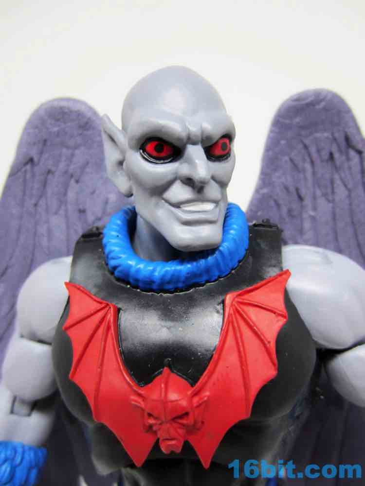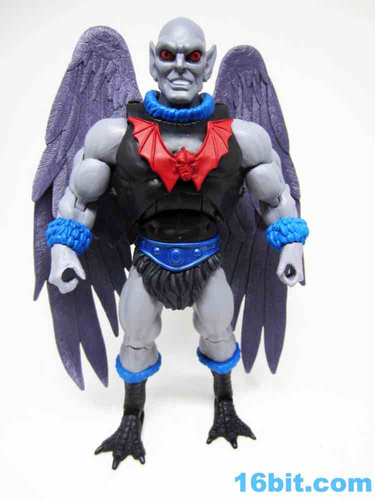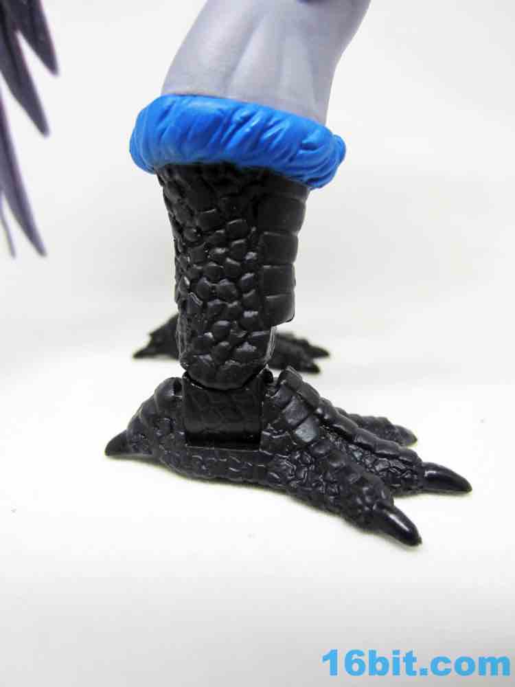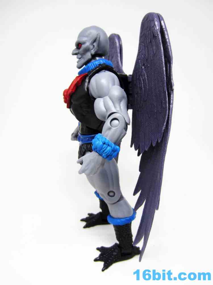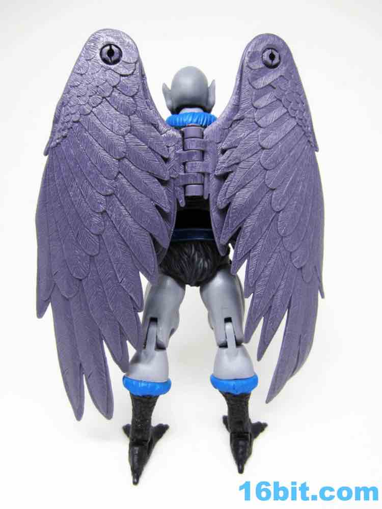 Articulation has nothing you haven't seen, and everything more or less works. The wings are very much like Queen Angella, the feet could make for a great rooster figure some day, and his hands have no problems holding the feathered crossbow or the nifty neck thing. You can totally tie up a dude.