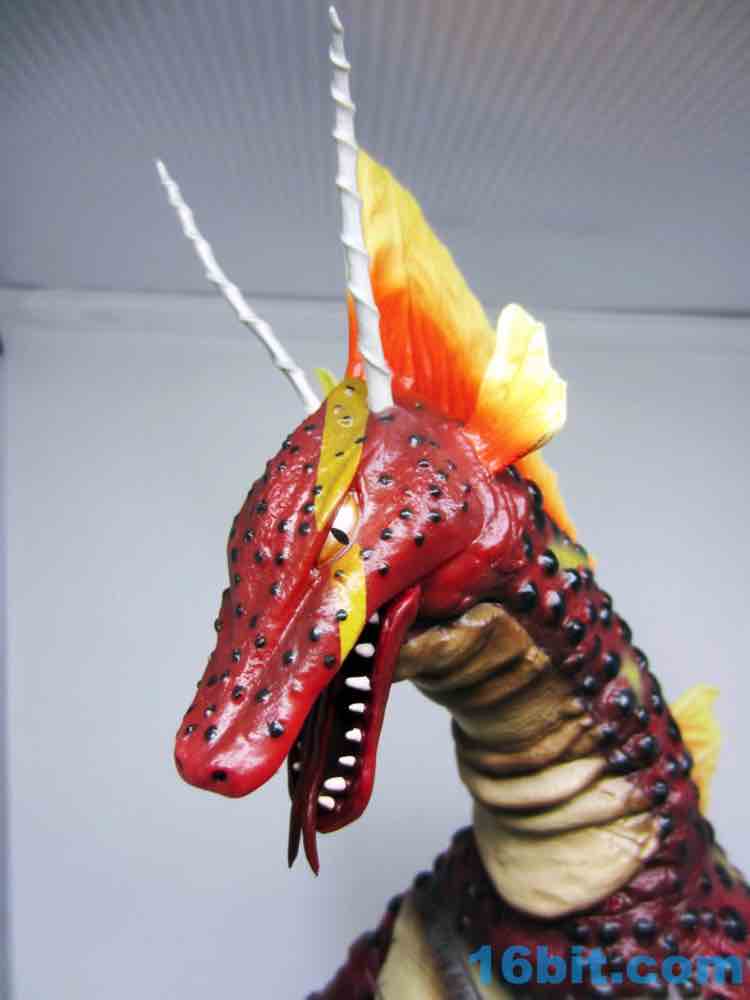 The good thing about the toy collectors' market is that the more obscure the character, the more insane the figure or collectible is. In the case of Titanosaurus 1975 Version, there are precious few toys based on this monster. He was in Terror of Mechagodzilla in 1975, and I don't believe has been in another film since. In addition to this figure, there's a Minimates figure, a BanDai figure and a couple of other smaller releases. There are even some nifty vinyl toys, but I don't think there's anything quite as big as this 14 1/2-inch figure. Some sellers have it at 12-inches, but it's actually taller thanks to his fins and little antenna.