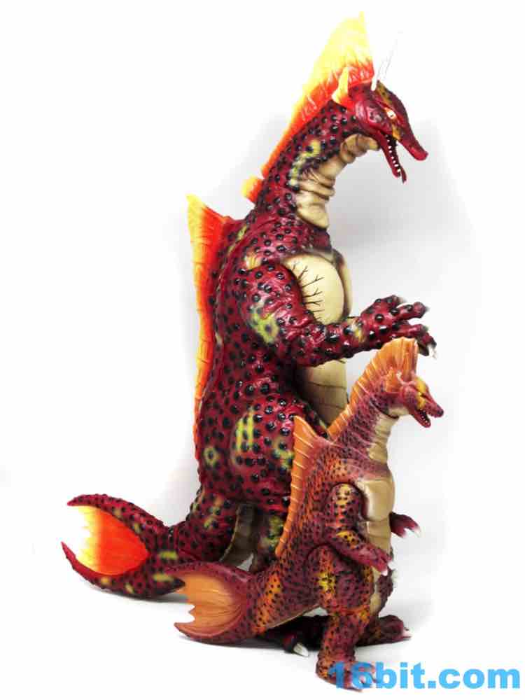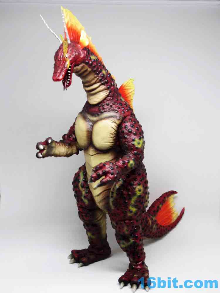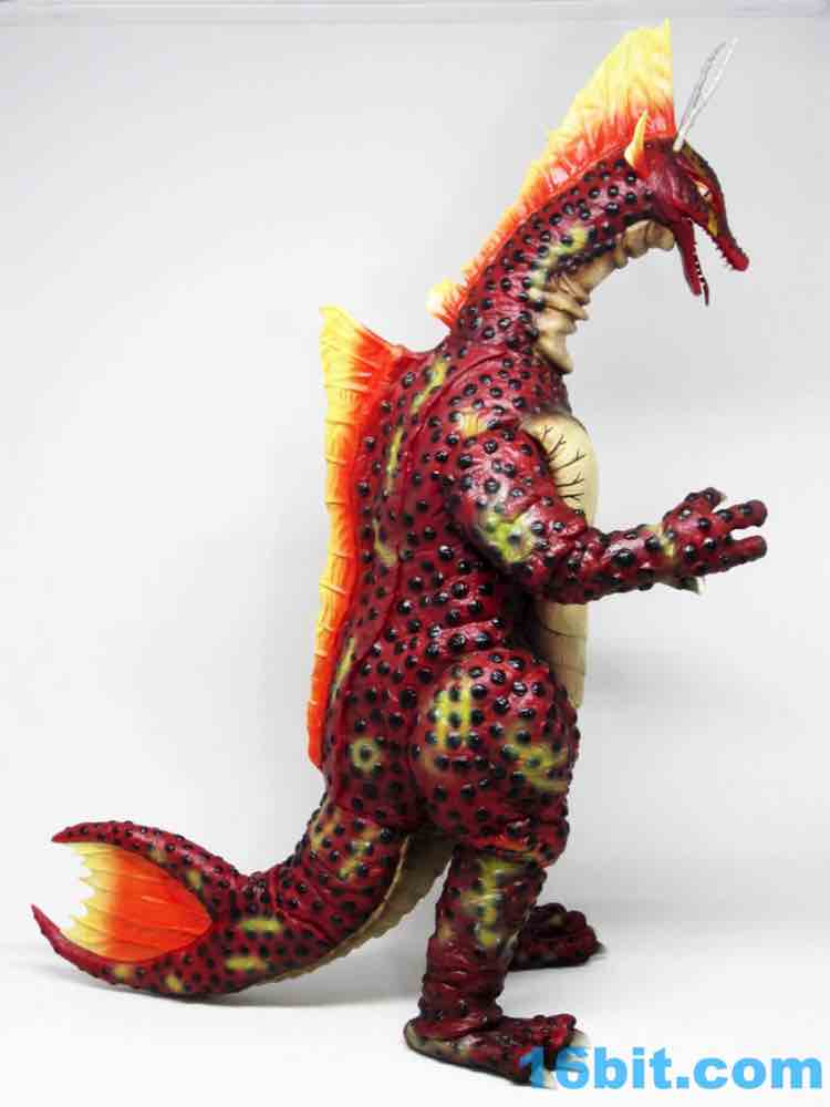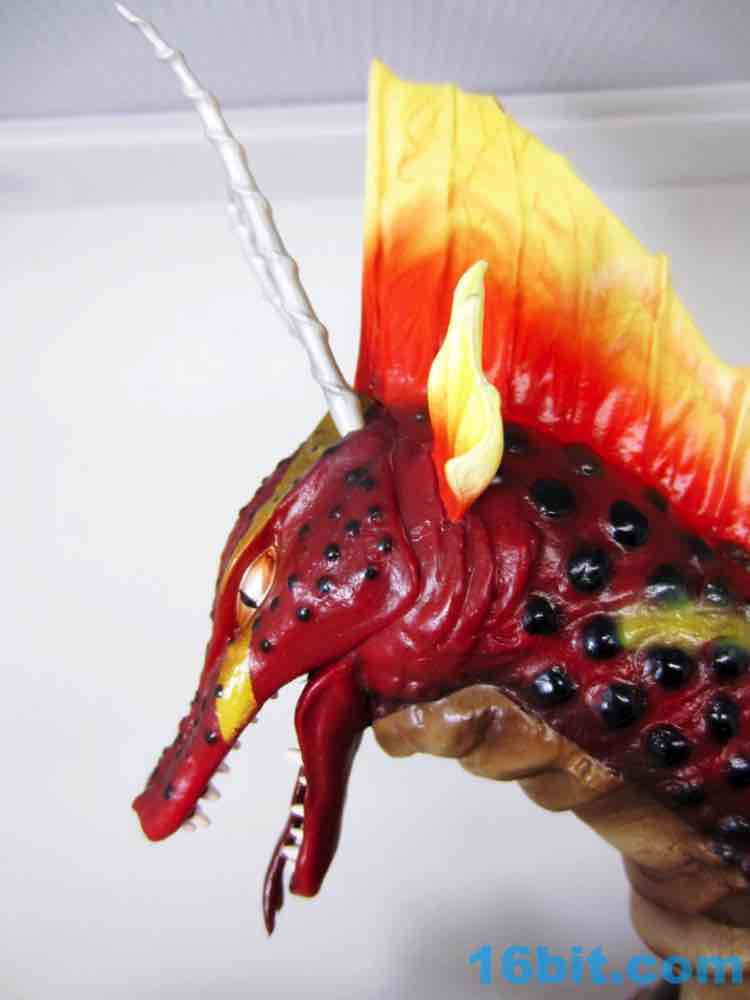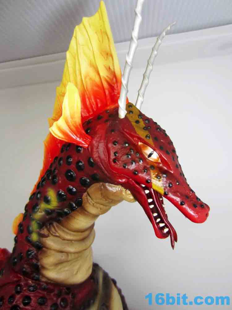 The coloring is amazing - black warts cover the figure, the eyes have a gorgeous metallic sheen to them, there's a neon orange fire-like shade on his fins, and there are all sorts of markings and shading throughout the figure. Even his claws have little black marks to help hide the seams on the actual costume, and if you squint you can see a lot of places on the toy that probably represent where the real-life costume fits together. Someone did their homework here. The coloring on BanDai's older, smaller effort is nothing to sneeze at but this big giant thing is a work of art. It costs a lot, and it feels like it should.