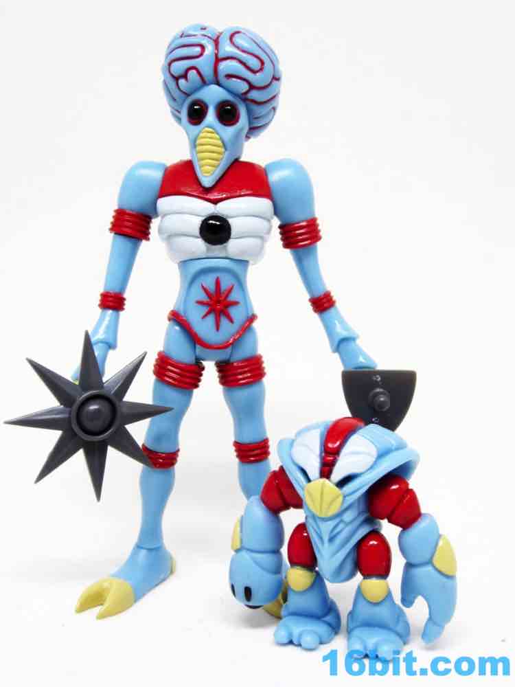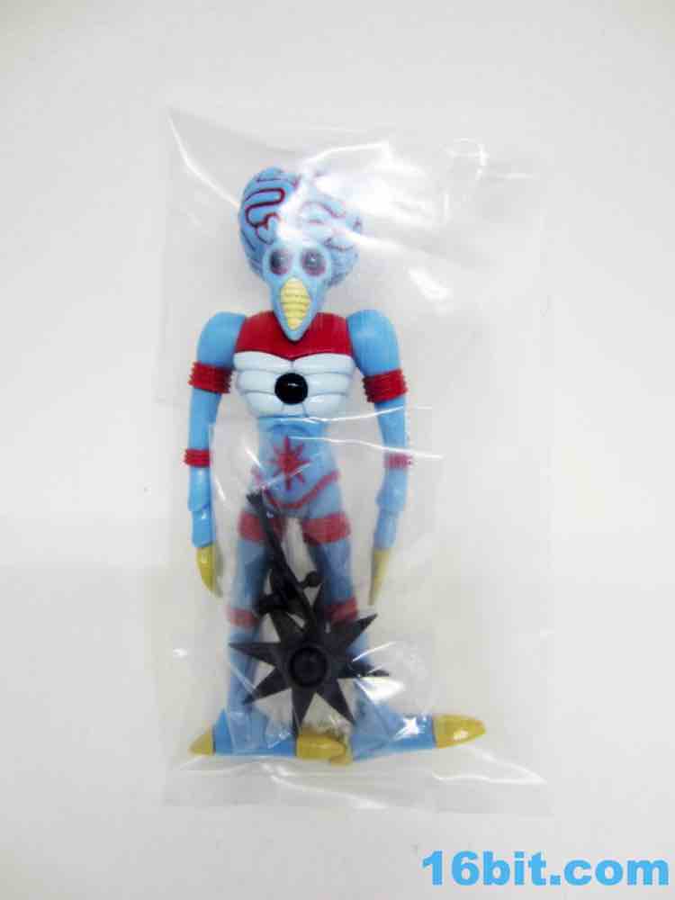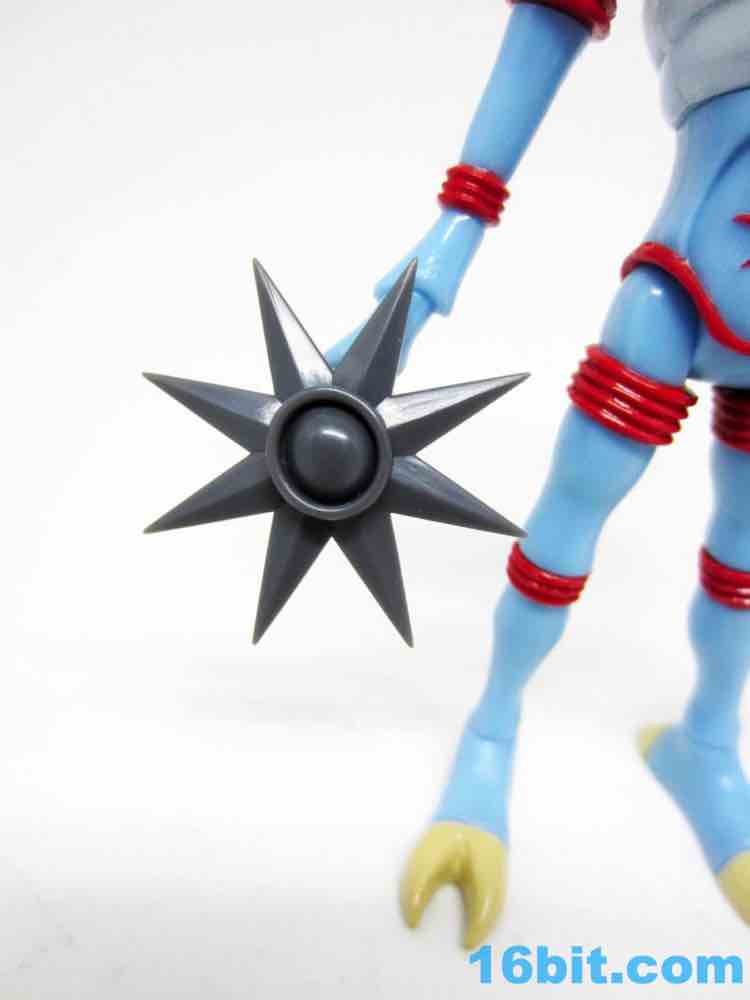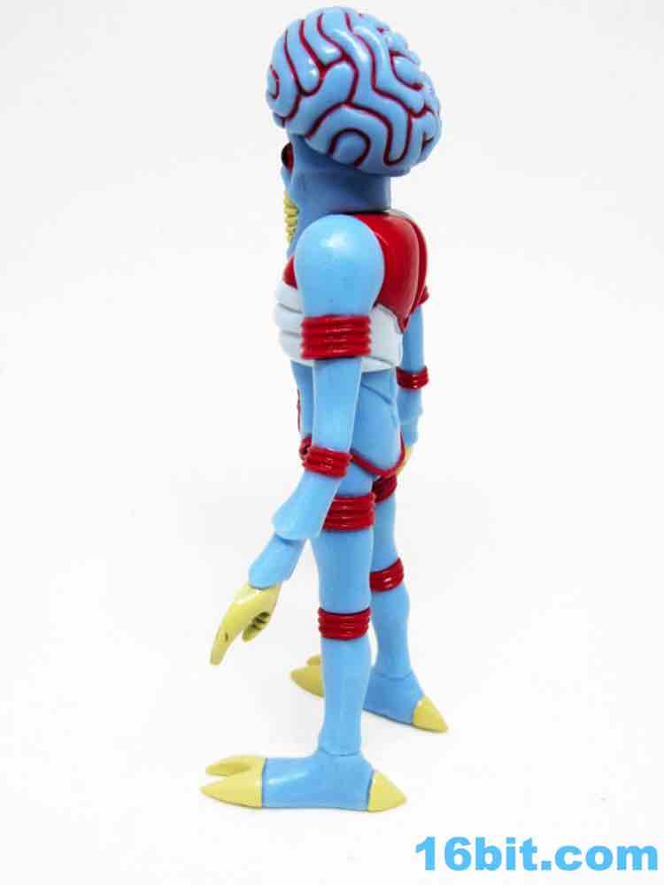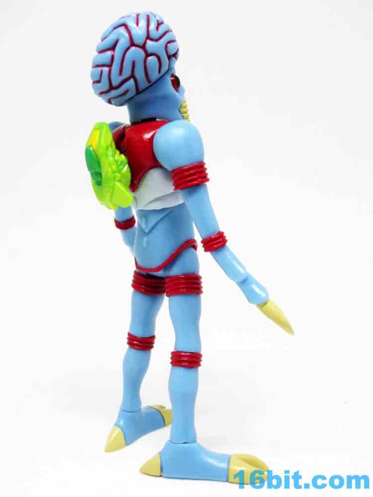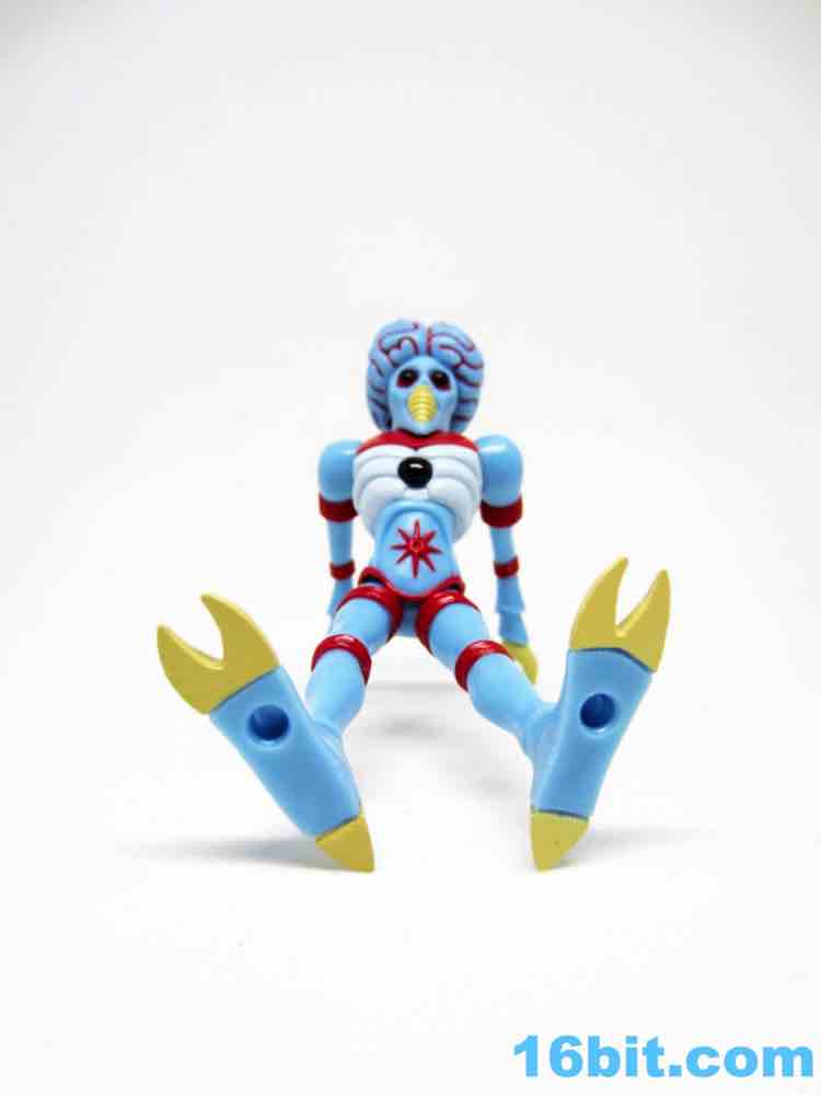 They didn't skimp on details, either. The brain - which is removable from the head - is gifted with blood-red detail lines. The same red is used for his faux accordion joints, upper torso, and the reds around his eyes. Also, you can see it on what appears to be a Speedo and a symbol on his belly which matches his star weapon. Bone accents are used for his mouth and claws. Black adds some contrast to the eyes and a symbol on his chest.