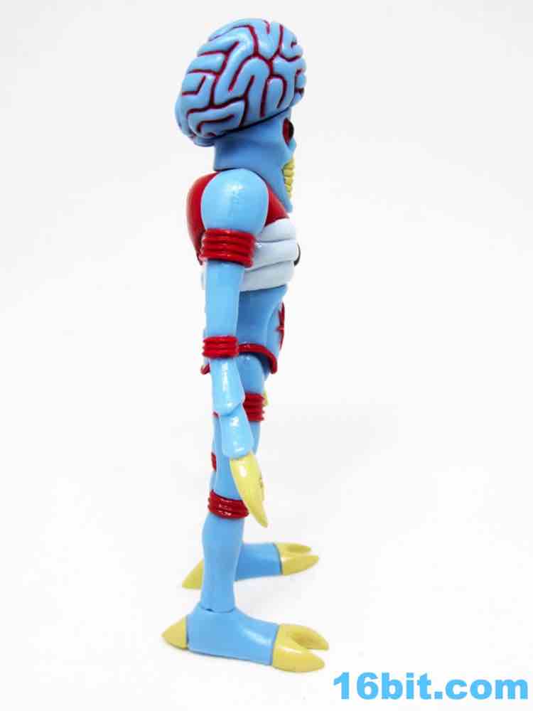 Articulation is the same as the previous figures, and the figure can be dismantled at each joint. There are 12 points of articulation, with a body featuring 14 dismemberable pieces. Mix and match if you're so inclined! You can swap out the brain, which is arguably one of the most fun features in this (or nearly any other) Glyos figure. The possibility for customization is great, but how many other figures feature swappable brains? All of the joints move fairly well, except for the hips - they're slightly blocked by the torso.